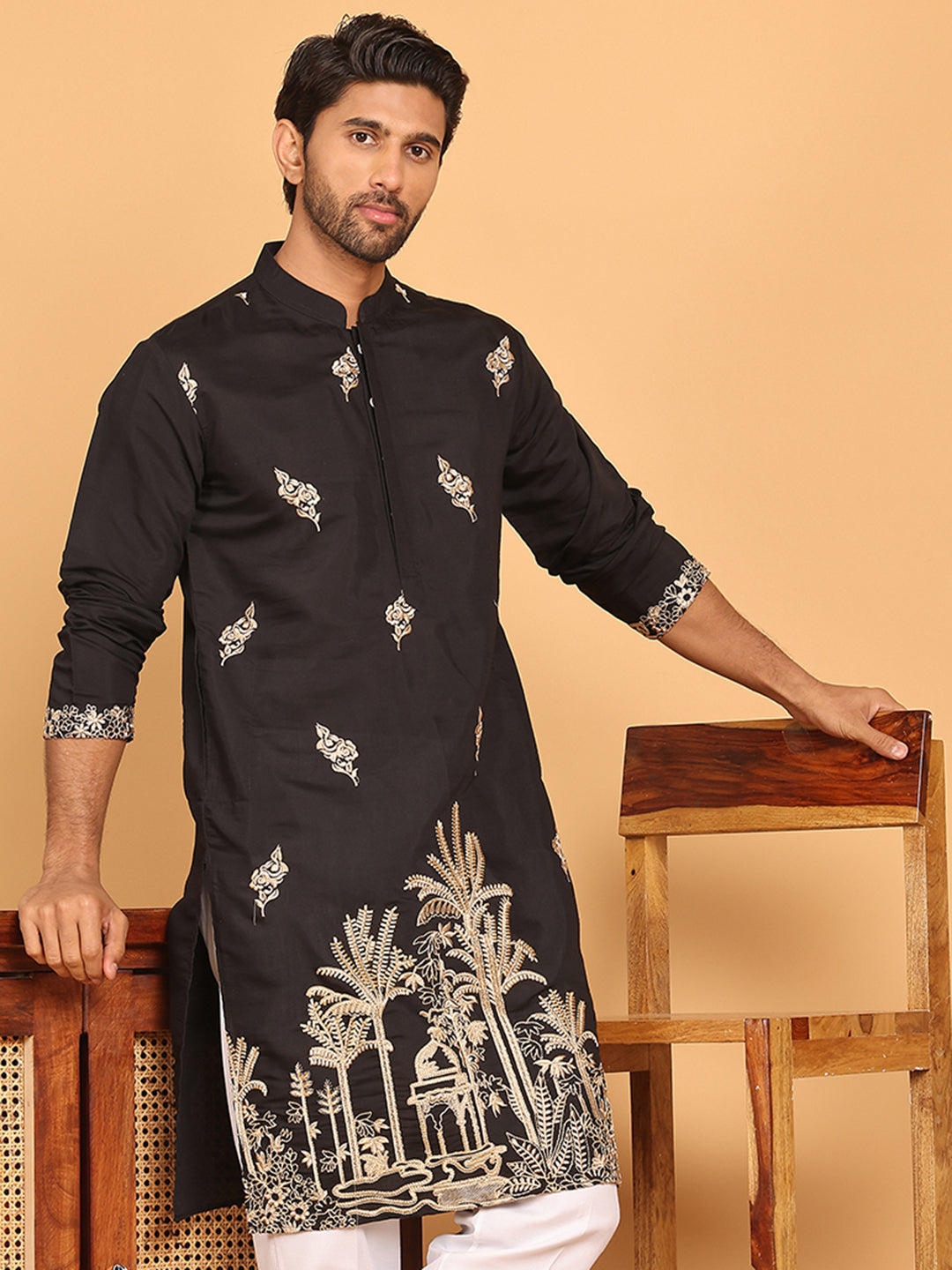Black Embroidered Straight Kurtas For Men ( KO 5172 Black )