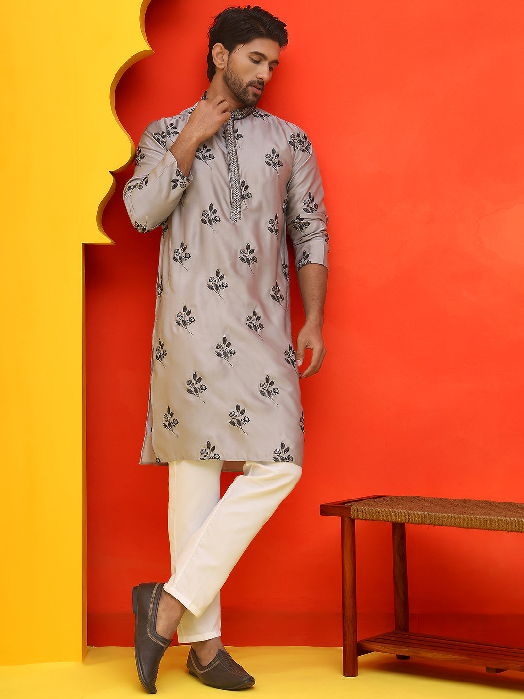 Chikankari Embroidered Kurta Pyjama For Men ( JOKP P 5213 Grey )
