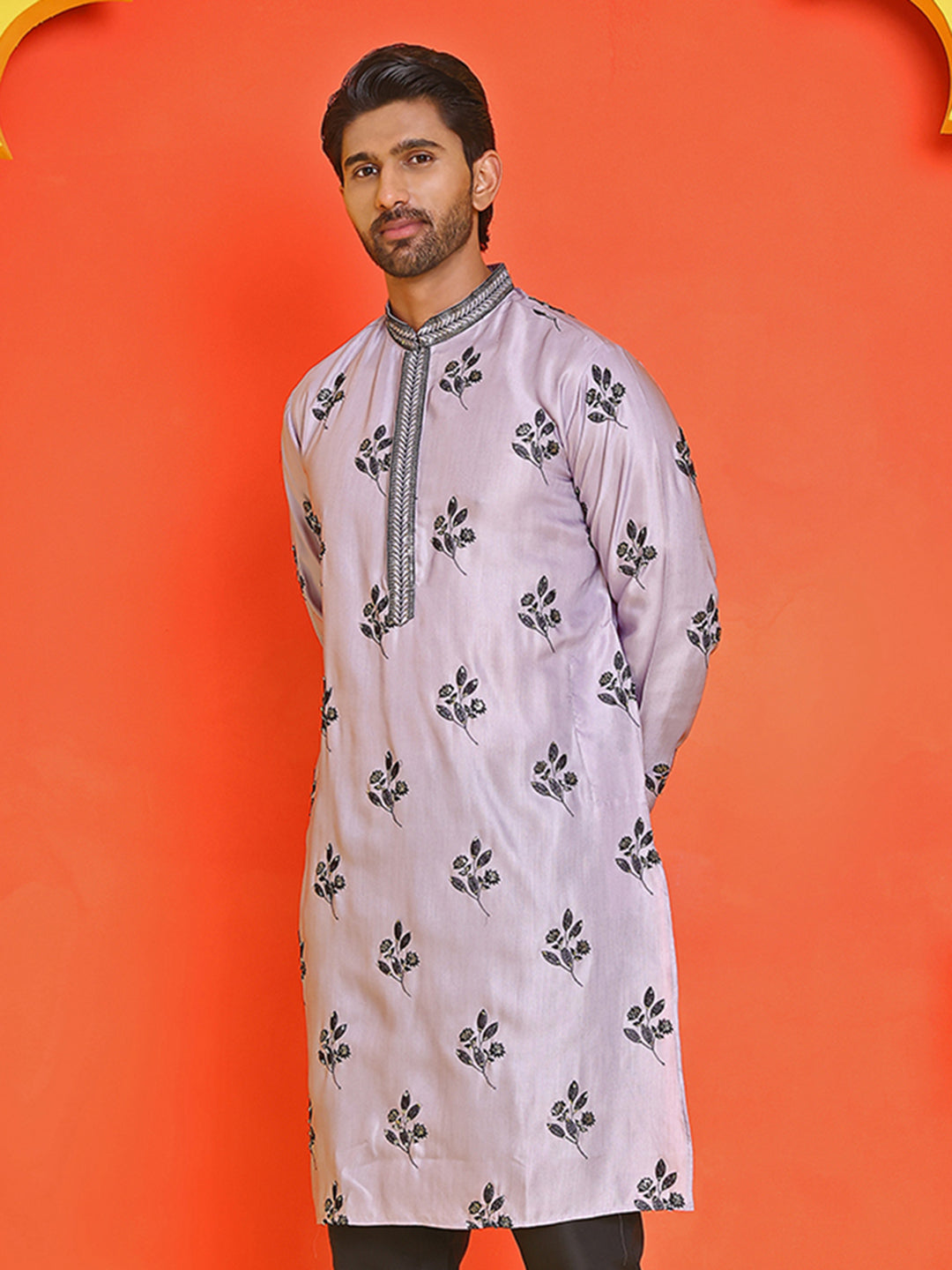 Chikankari Embroidered Kurtas For Men ( KO 5213 Purple )