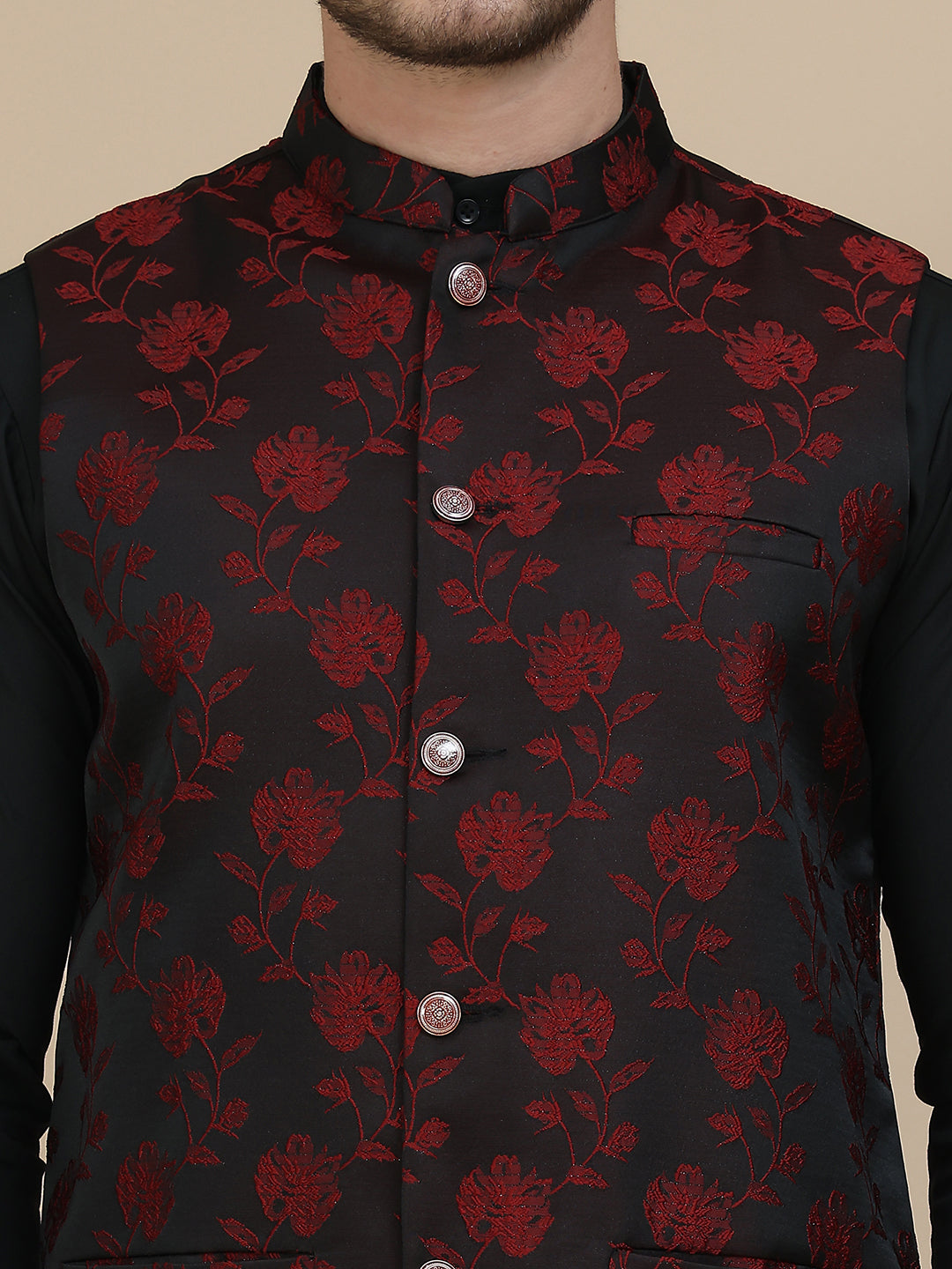 Embossed Nehru Jacket for Men ( JOWC 4133 Maroon )