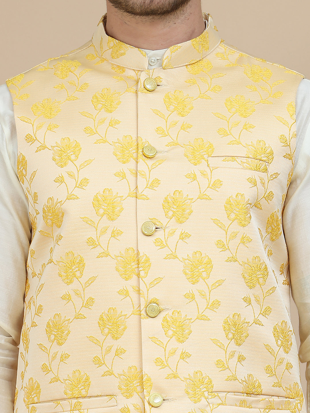Embossed Nehru Jacket for Men ( JOWC 4133 Yellow )