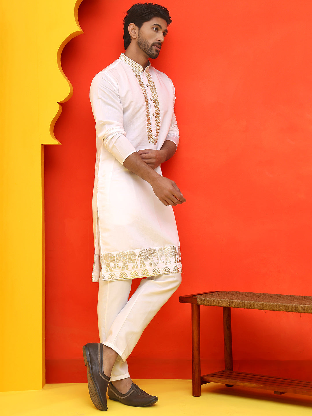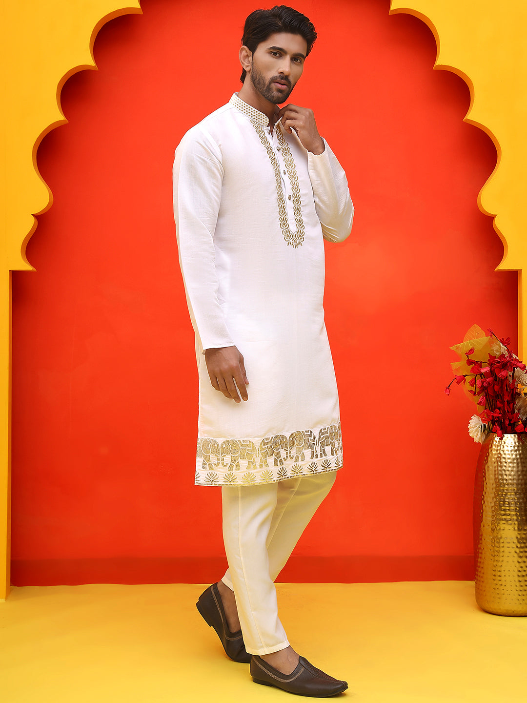 Embroidered Chikankari Kurta Pyjama For Men ( JOKP P 5219 White )