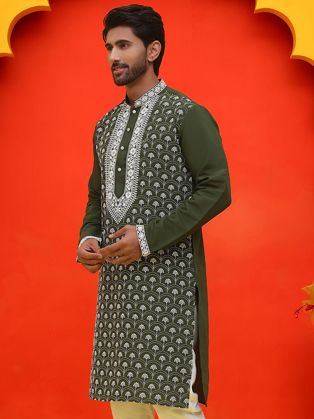 Embroidered Kurtas For Men ( KO 5220 Olive )