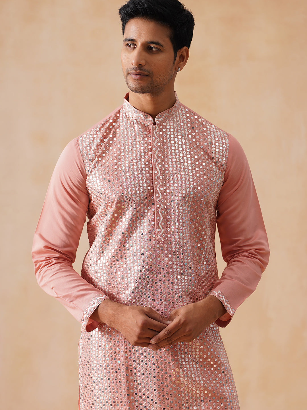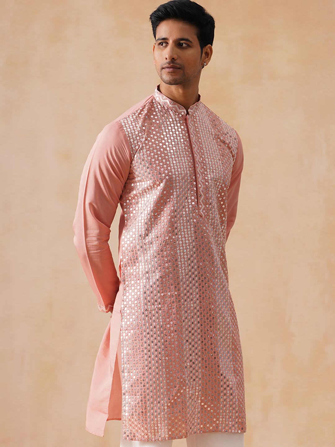 Embroidered Mirror Work Kurta Pyjama ( KO 5286 Pink )