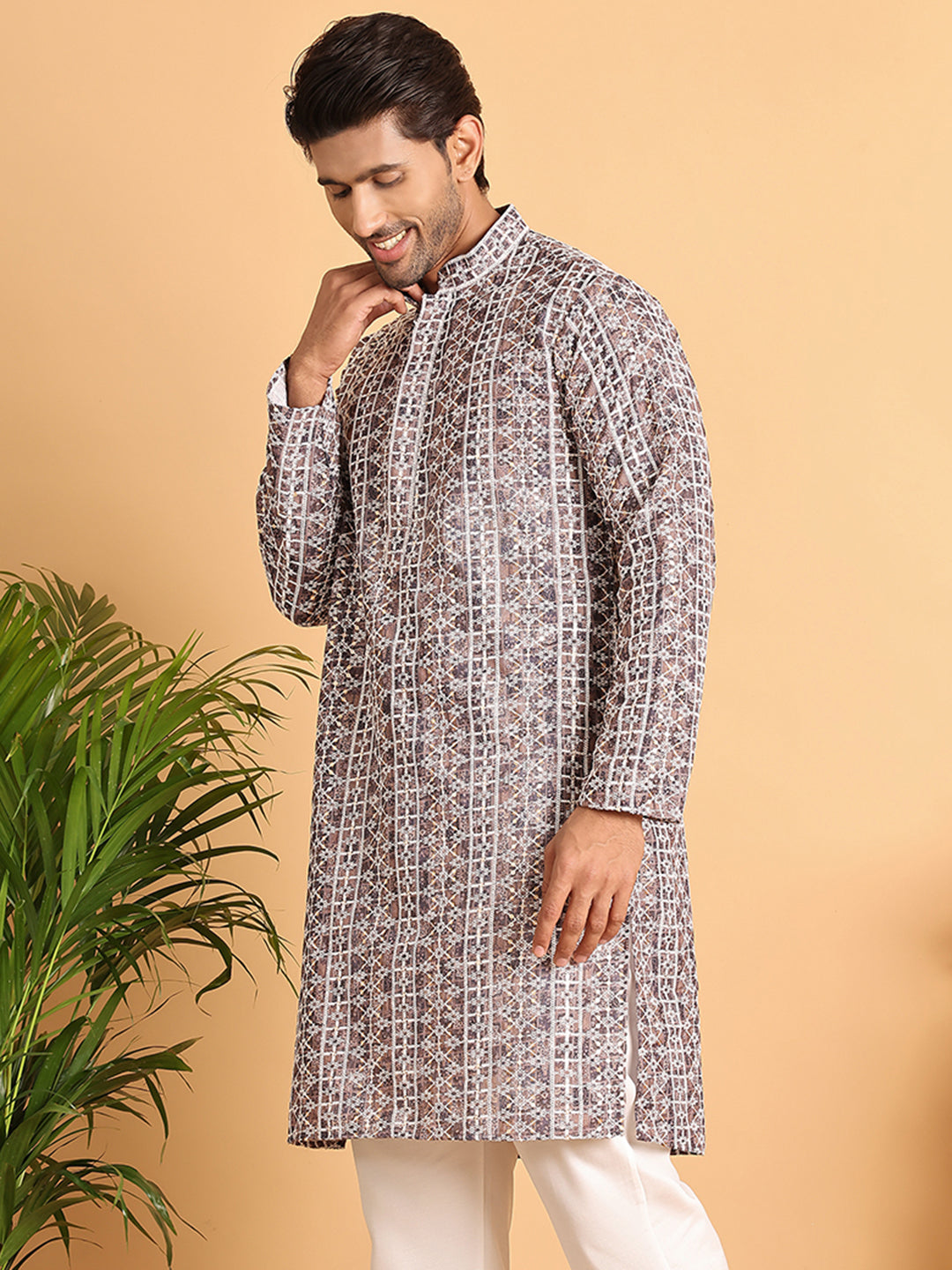 Embroidered & Printed Kurtas For Men ( KO 5124Coffee )