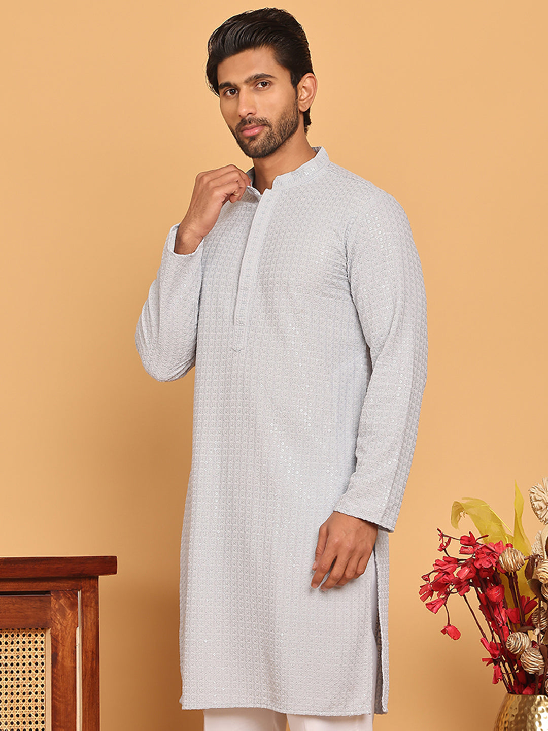 Embroidered & Sequence Kurtas for Men ( KO 5177 Grey )