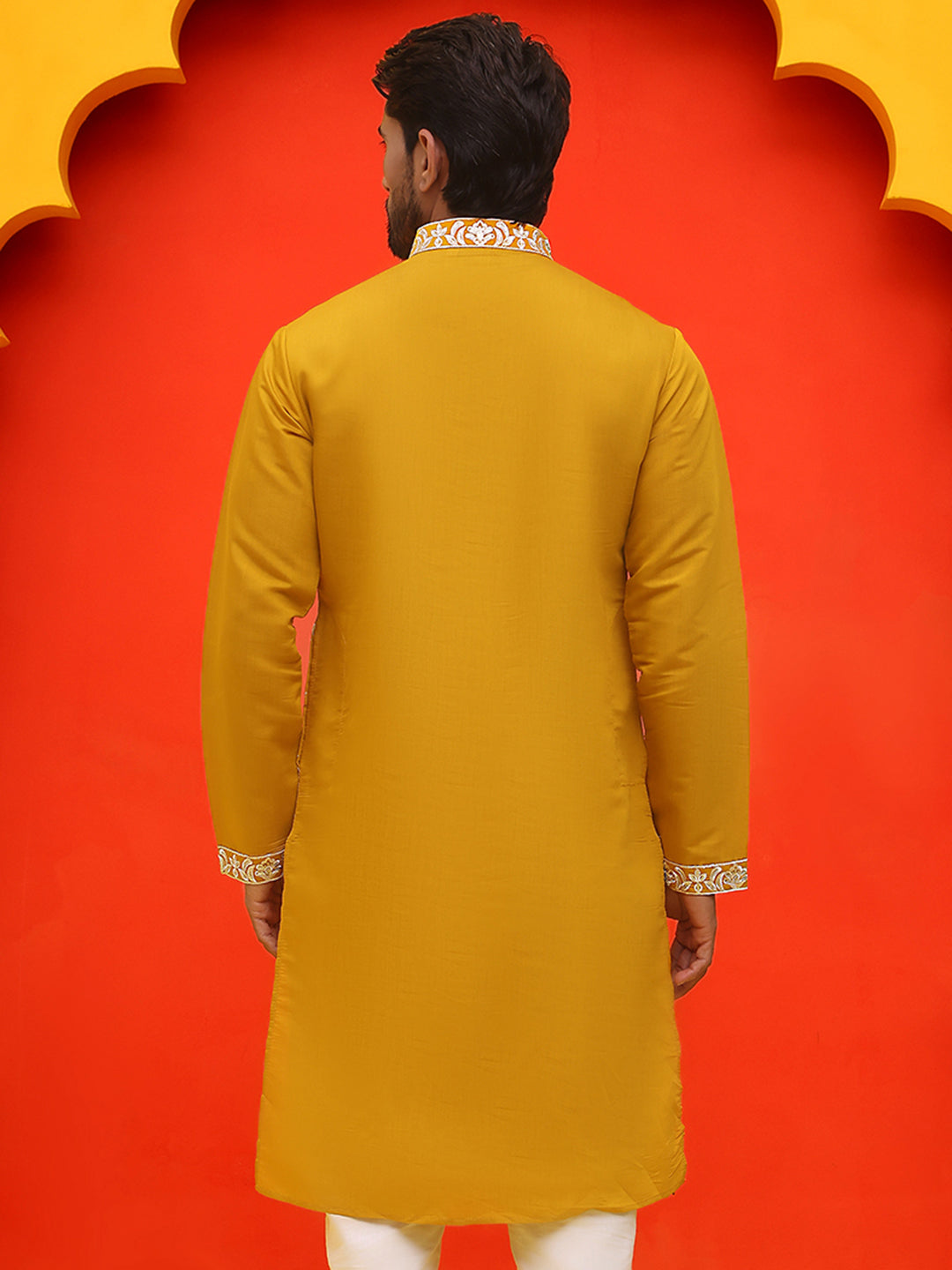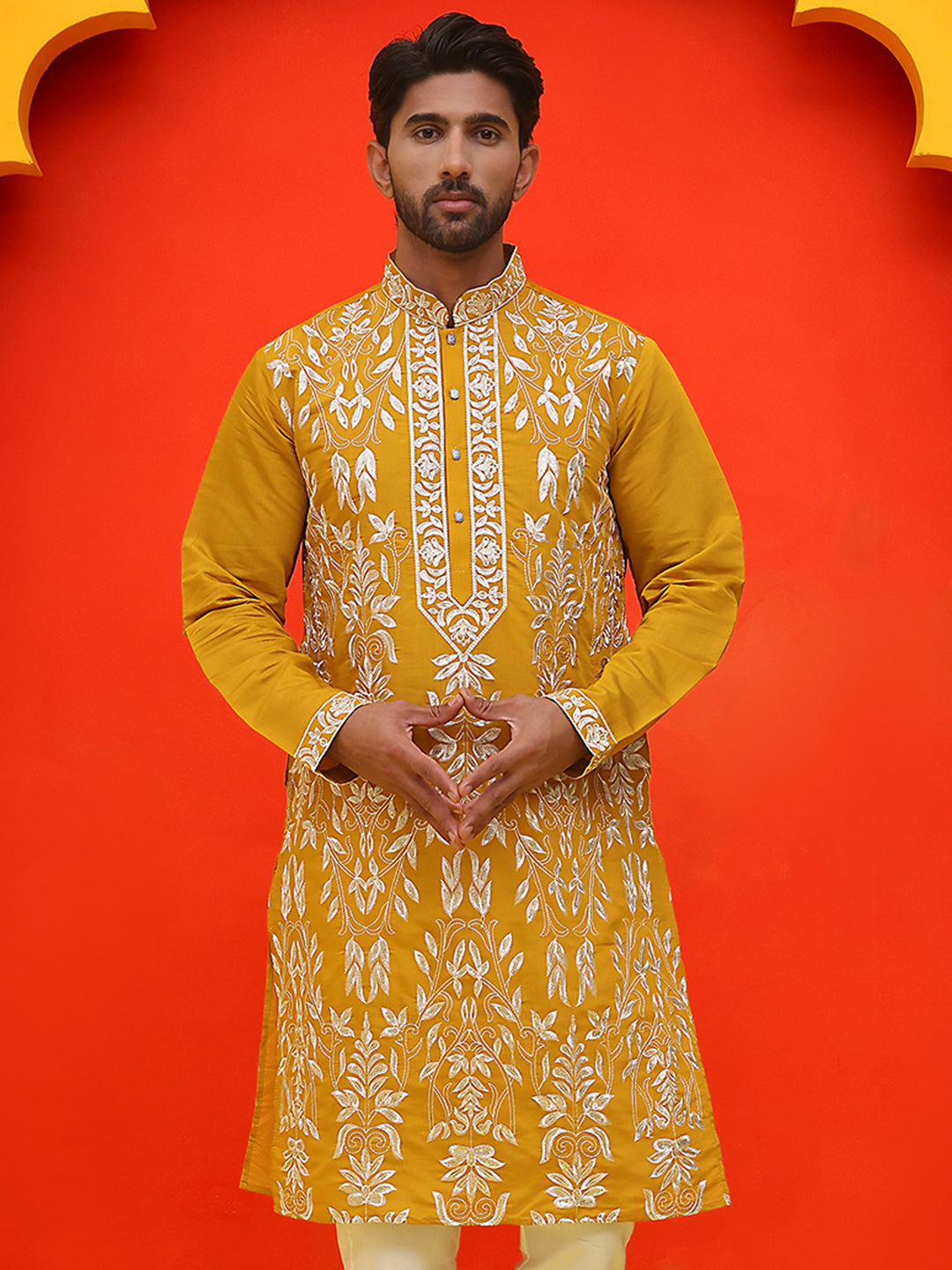 Embroidered & Sequins Kurtas For Men ( KO 5226 Mustard )