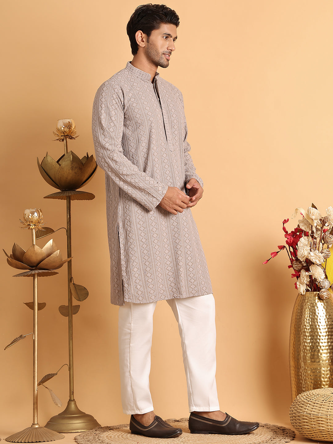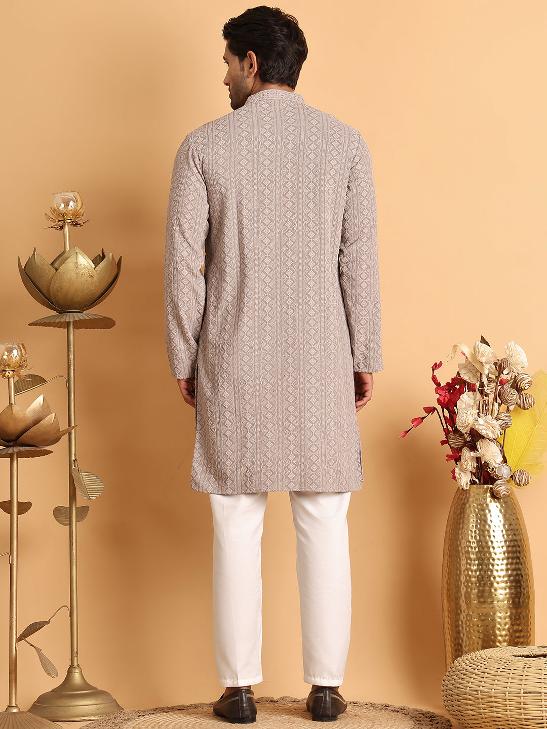 Embroidered & Sequins Straight Kurta Set For Men ( JOKP P 5116Beige )
