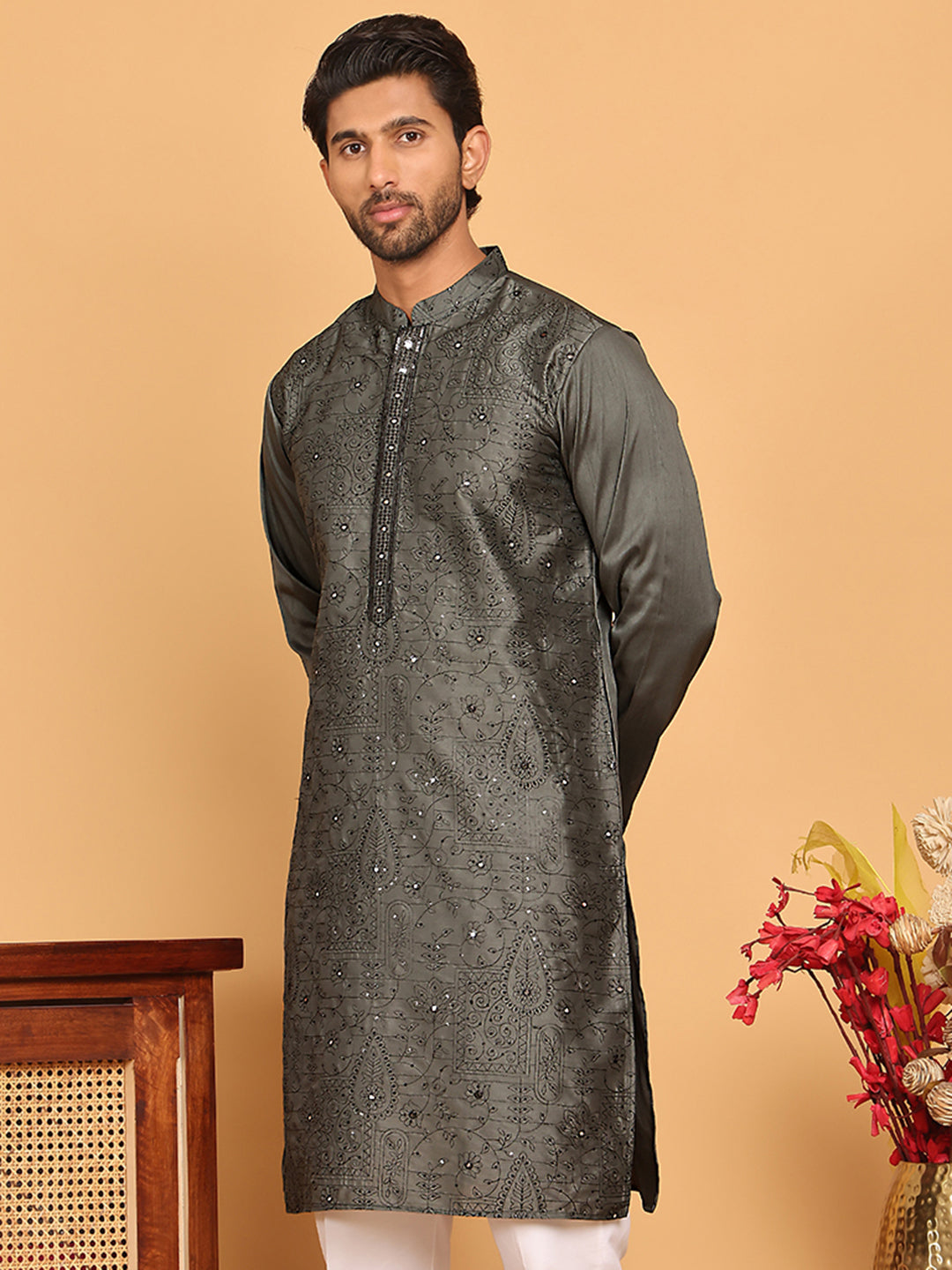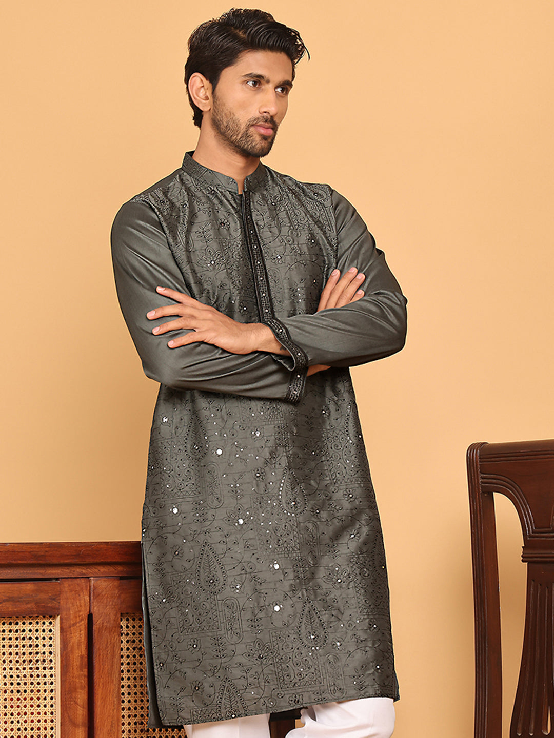 Embroidered & Sequins straight Kurtas ( KO 5189 Grey )