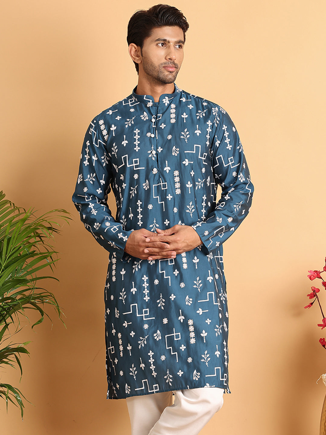 Embroidered Silk Blend Straight Kurta. ( KO 5126Peacock )