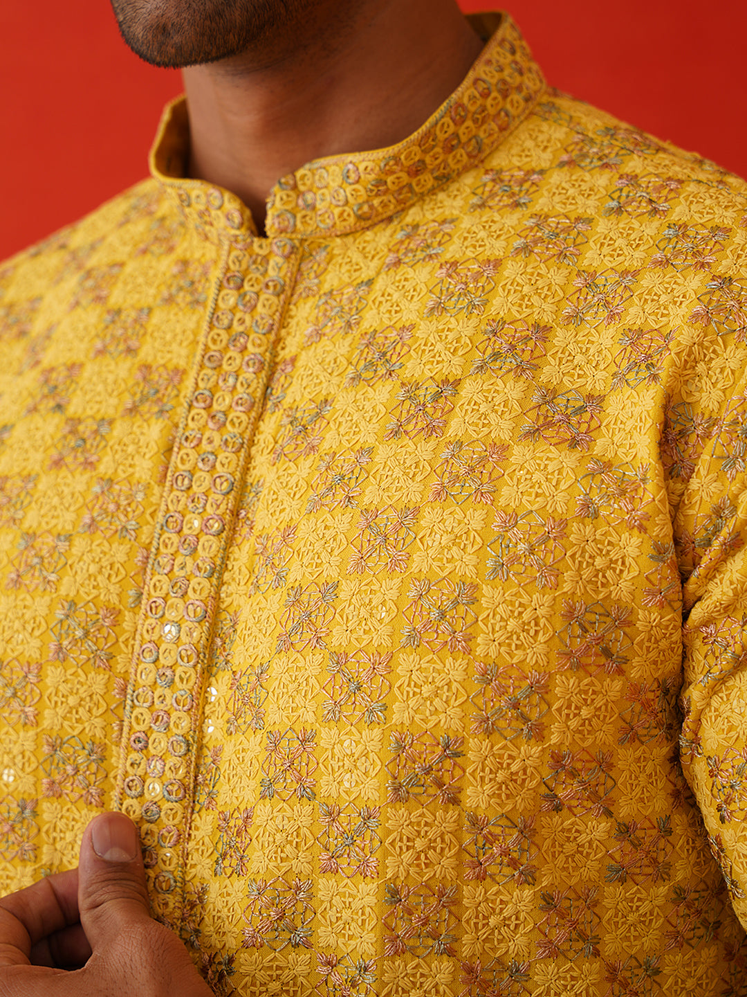 Embroidered Staight Kurta Set For Men ( JOKP P 5135Mustard )