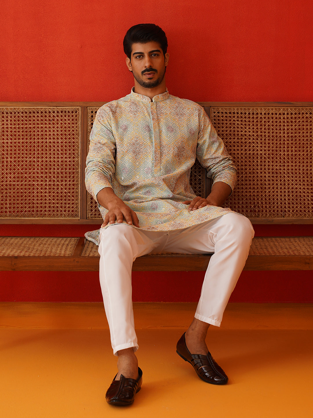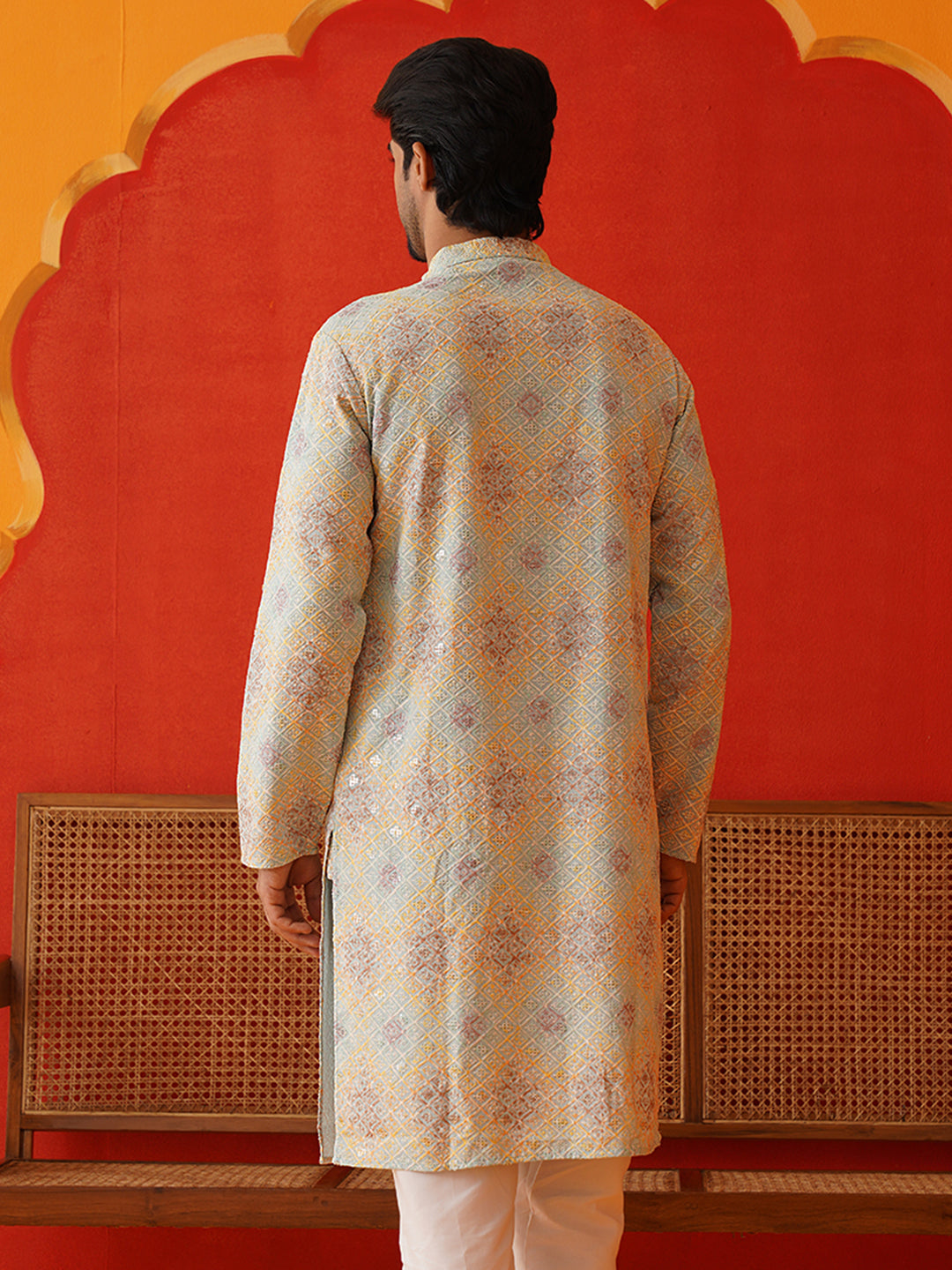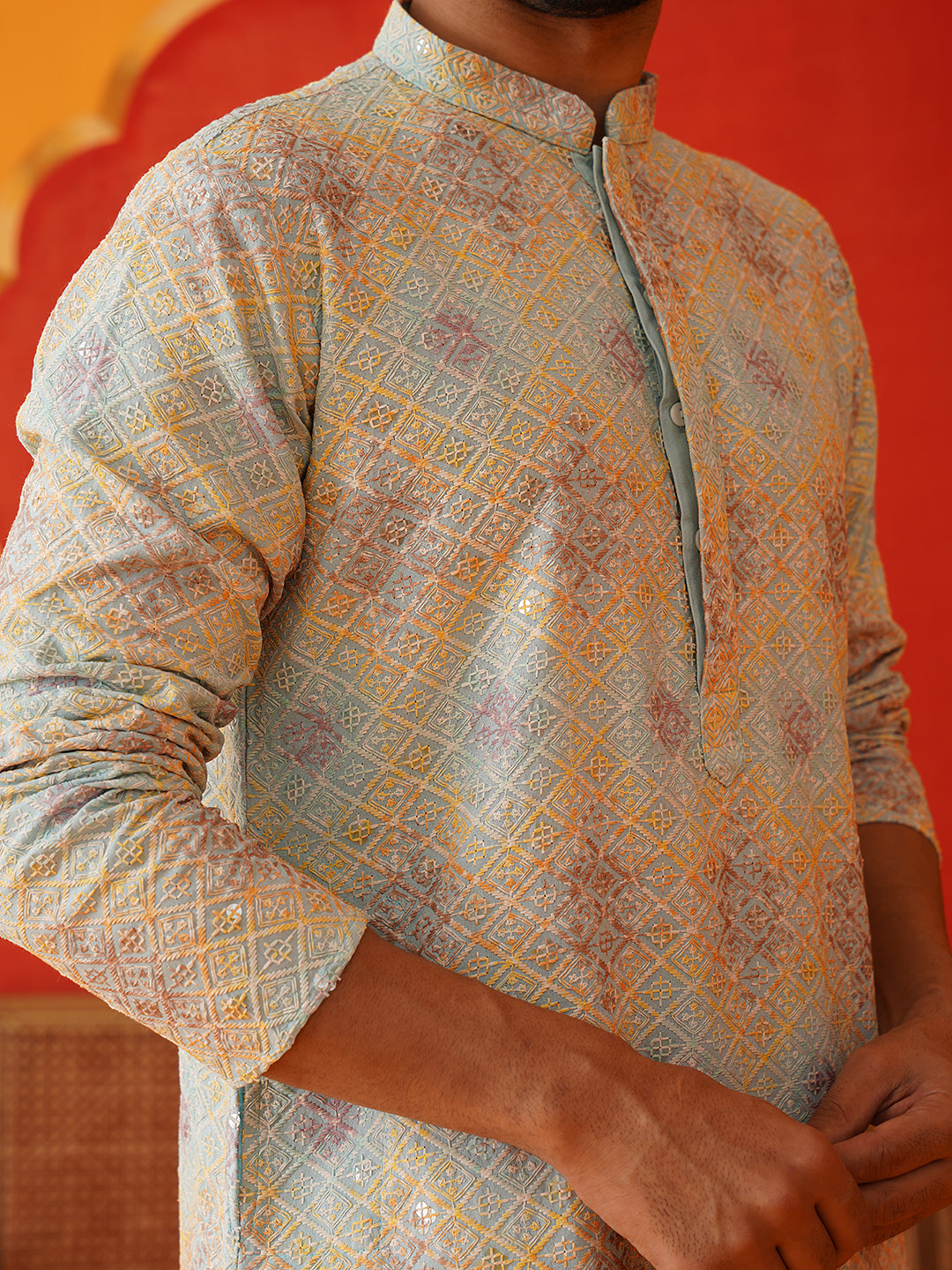 Embroidered Staight Kurtas For Men ( KO 5130Sky )