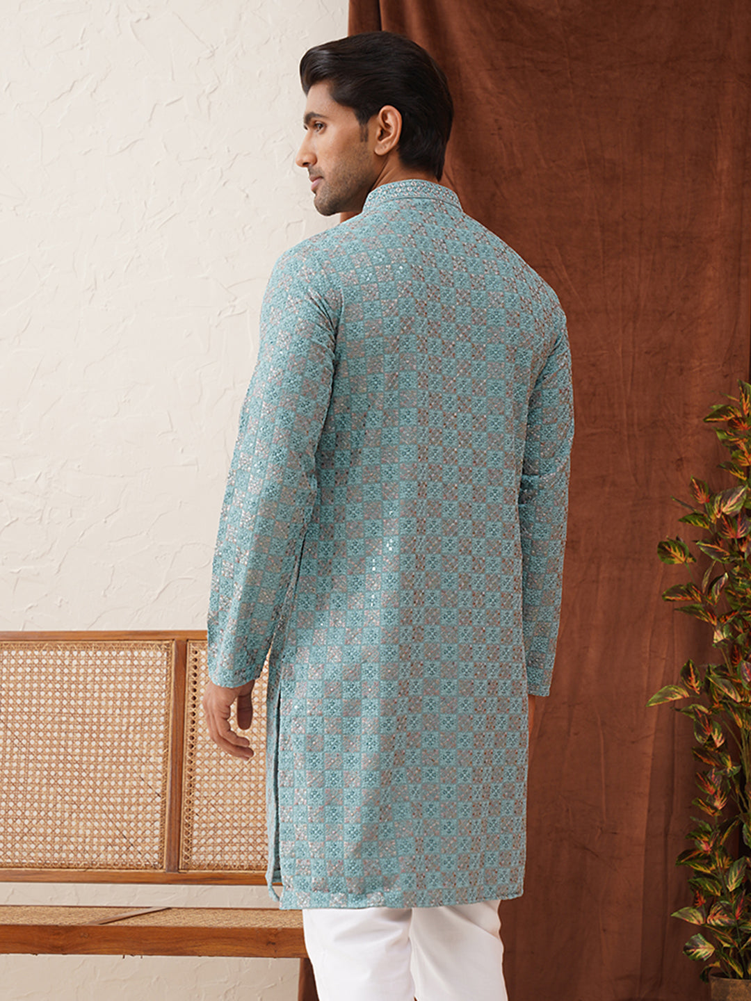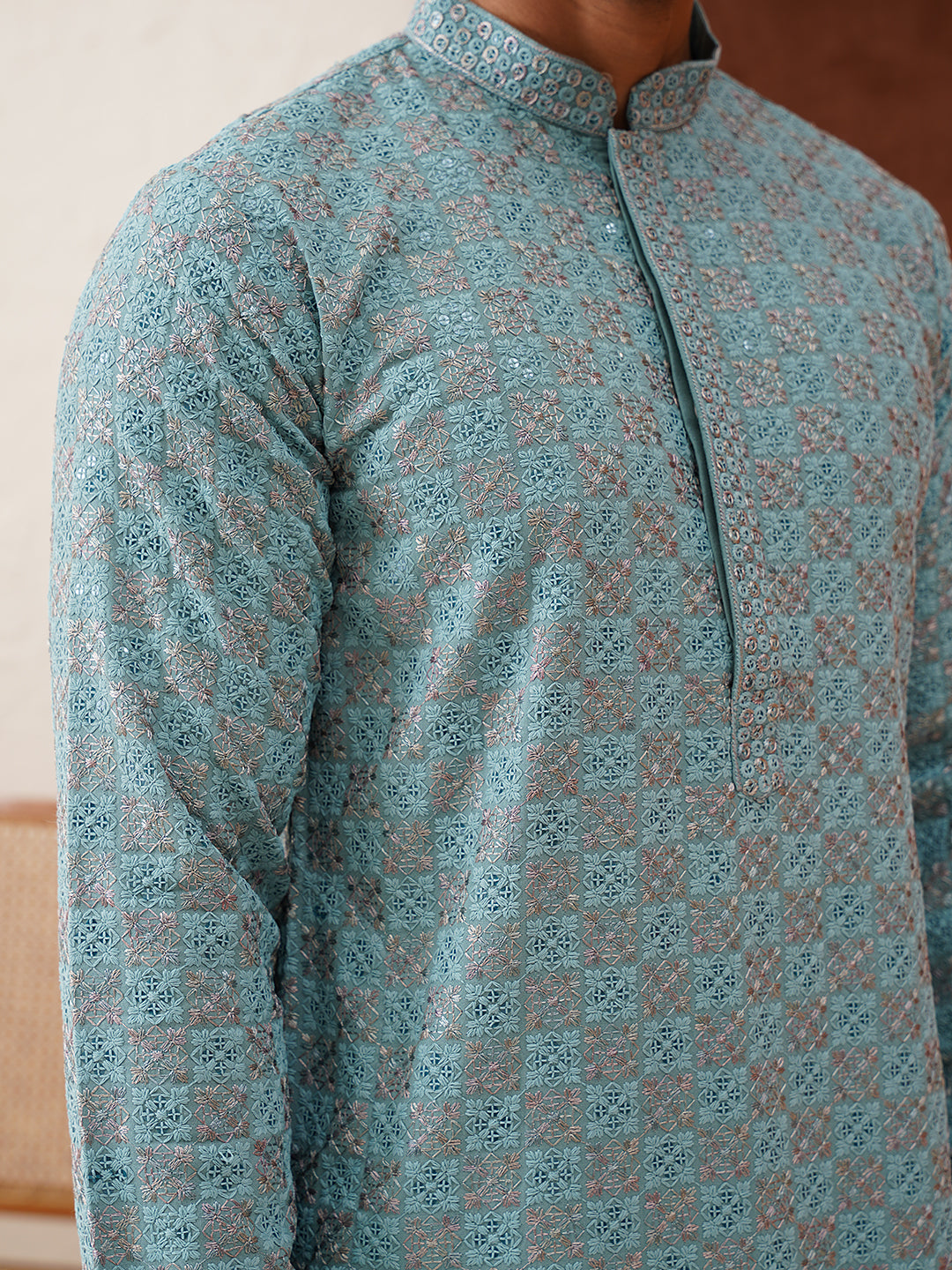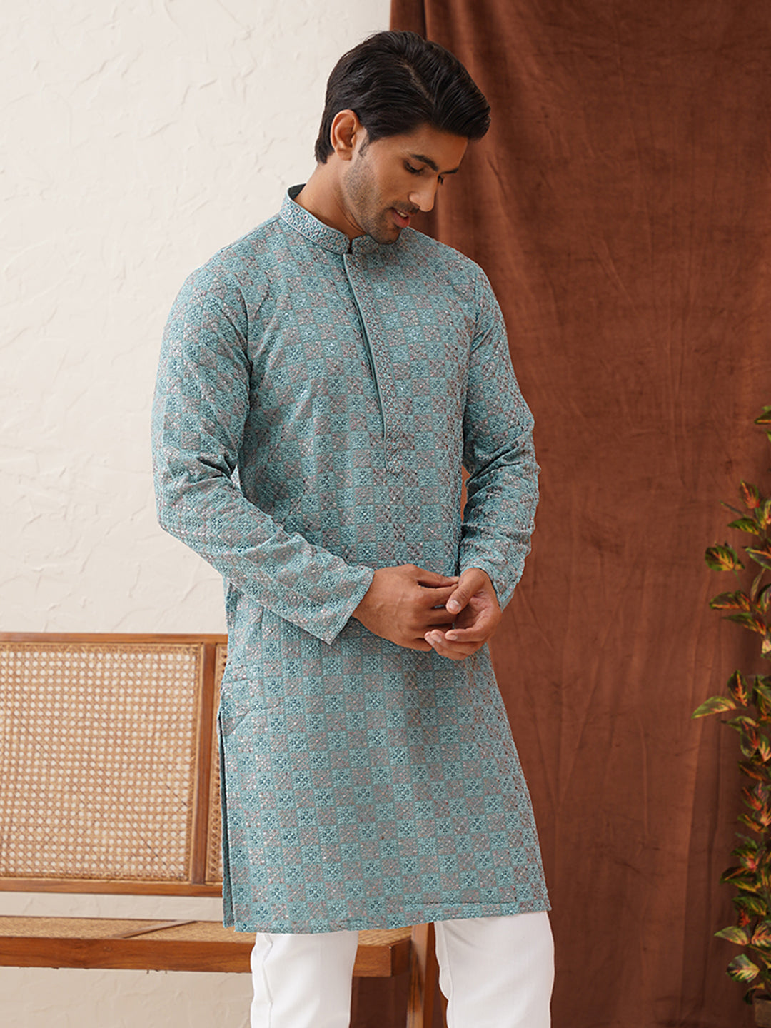 Embroidered Staight Kurtas For Men ( KO 5135Blue )