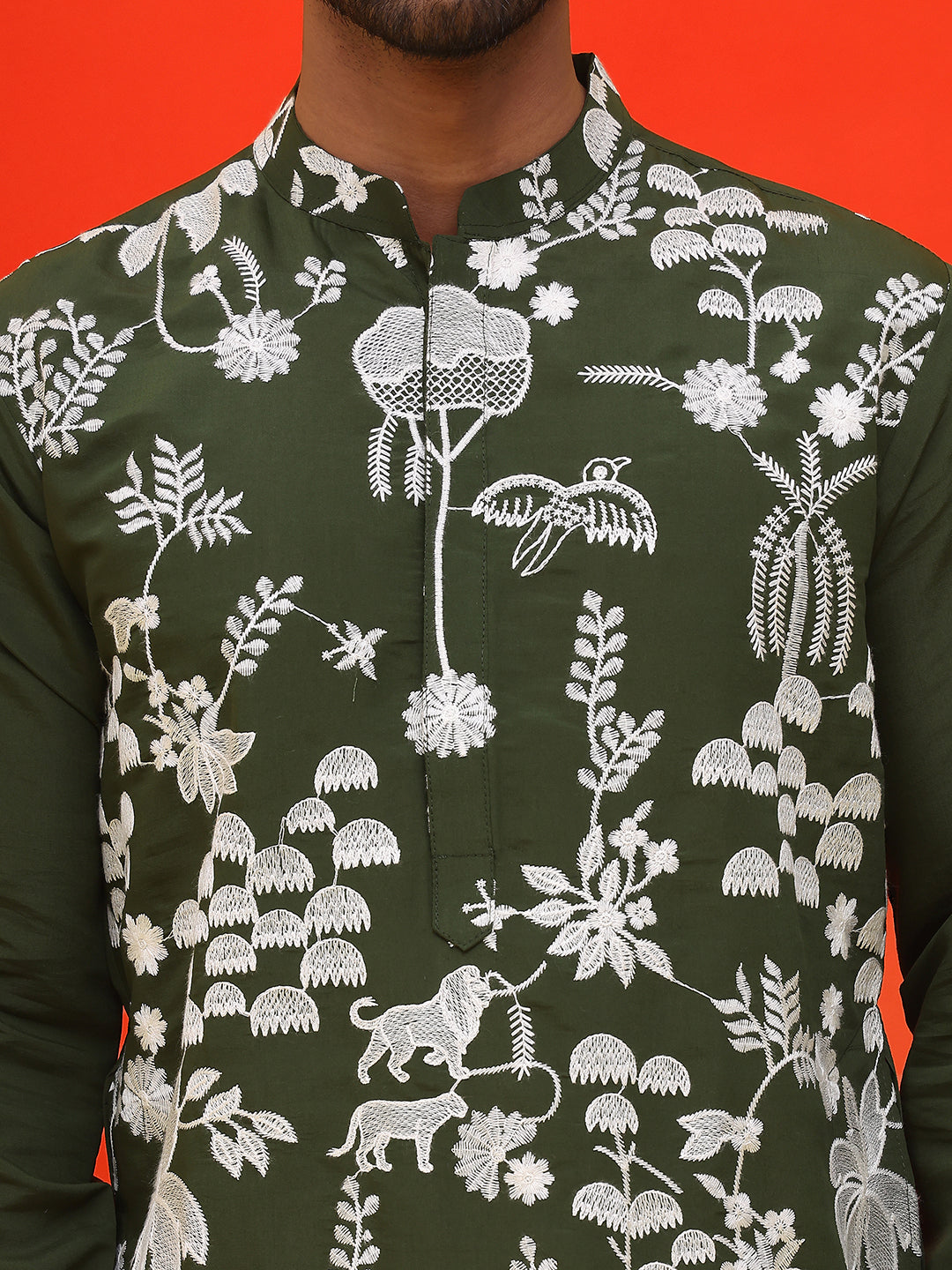 Embroidered Straight Kurta Pyjama Set ( JOKP P 5137 Olive )
