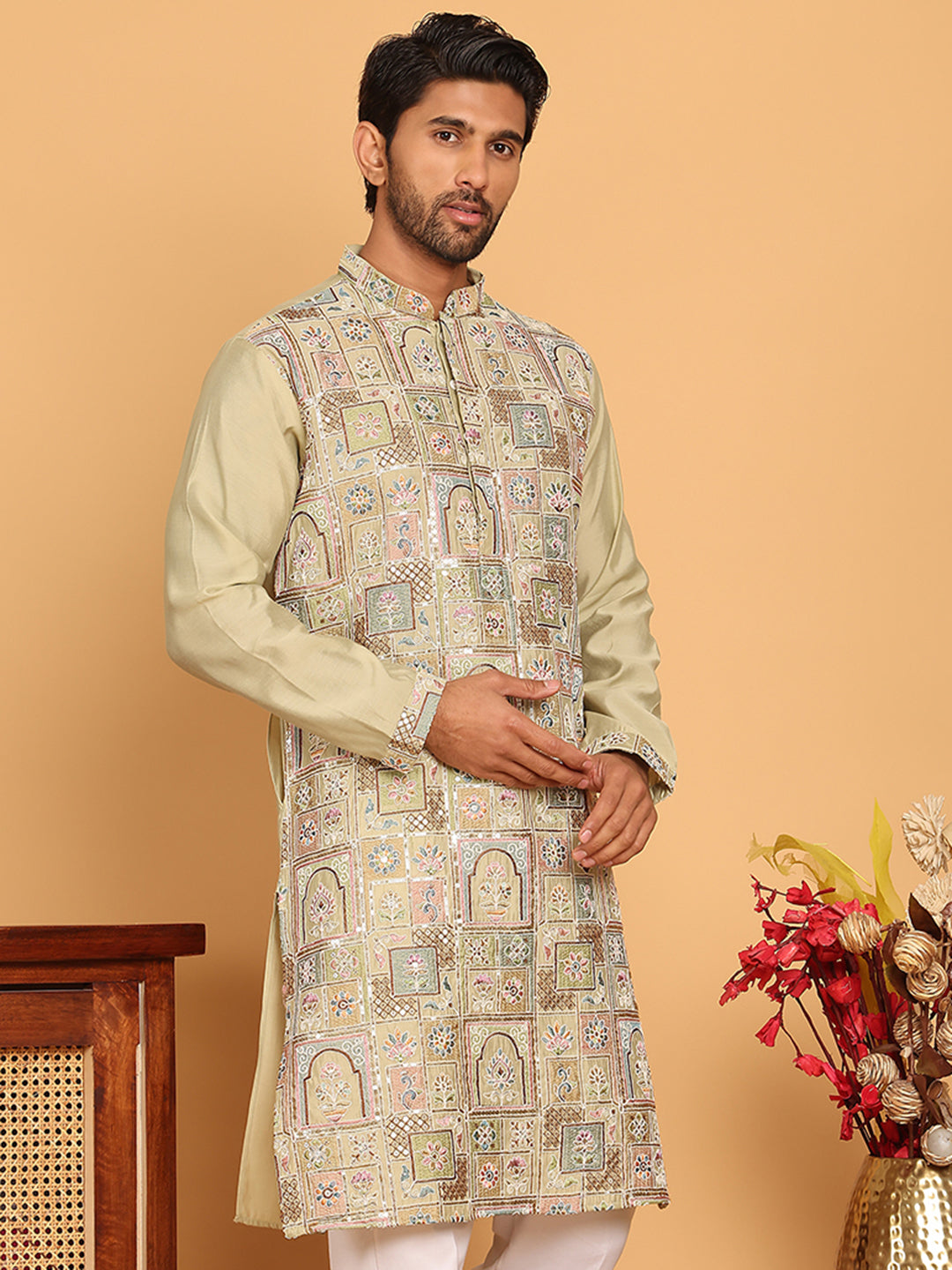 Embroidered Straight Kurtas For Men ( KO 5174 Pista )