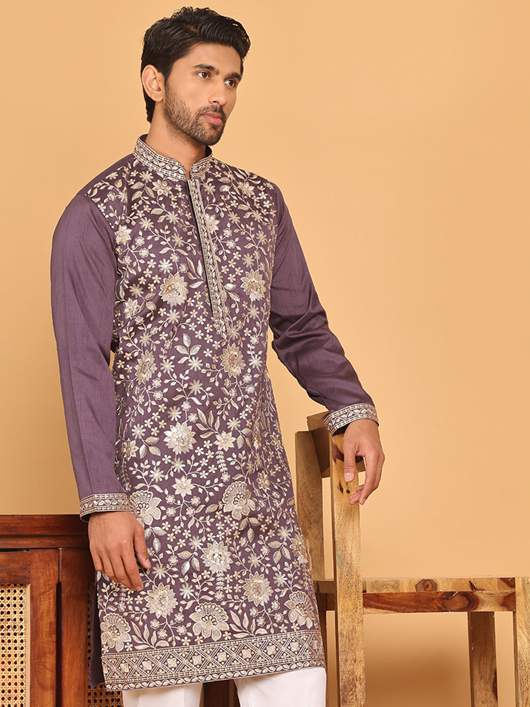 Embroidered Straight Kurtas For Men ( KO 5184 Purple )