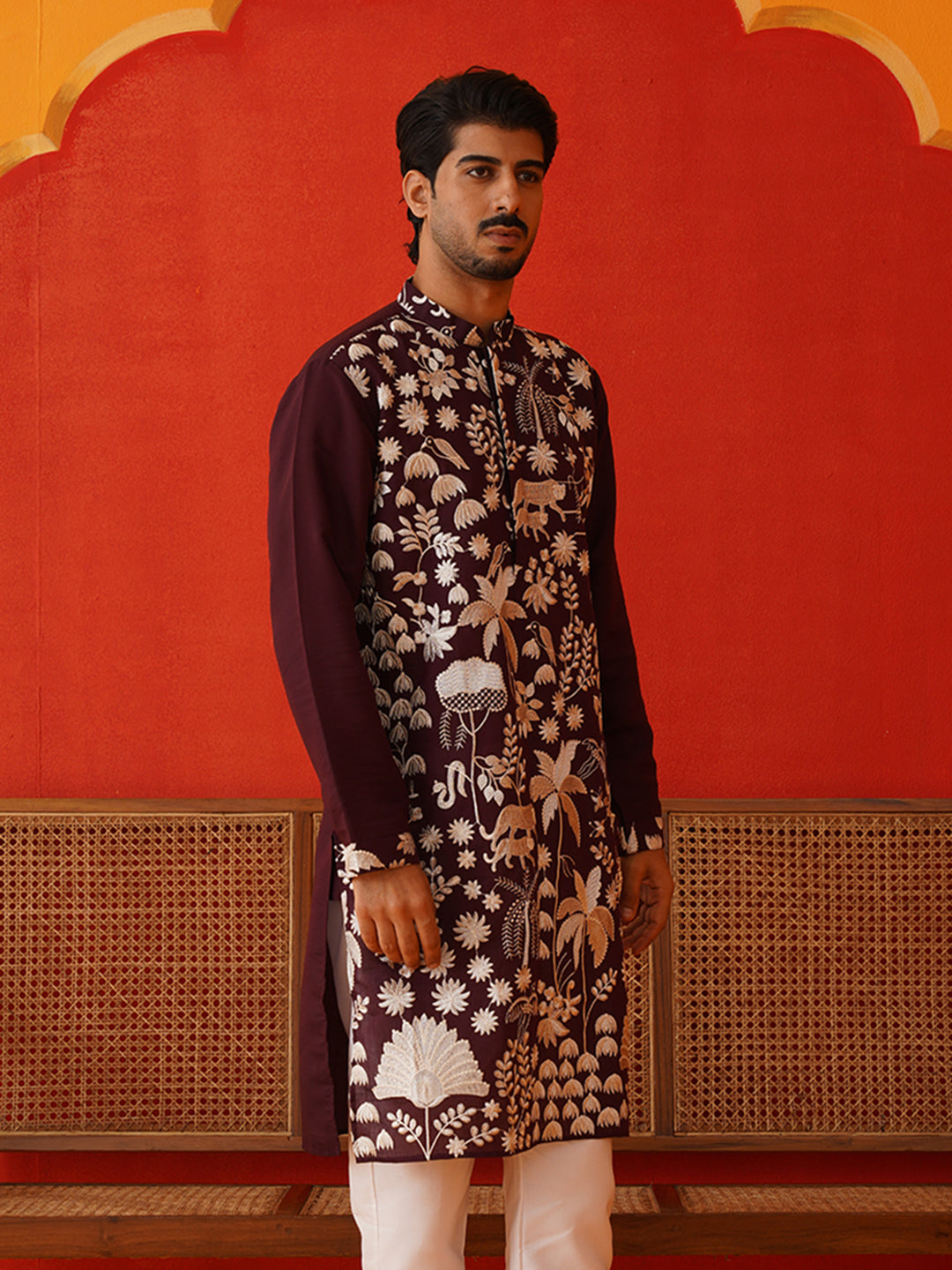 Embroidered Straight Kurtas. ( KO 5137Purple )