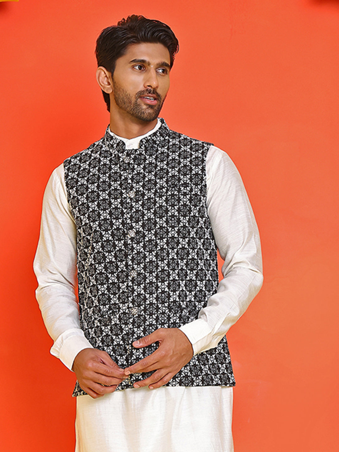Embroidered Viscose Rayon Nehru Jacket ( JOWC 4110 Black )