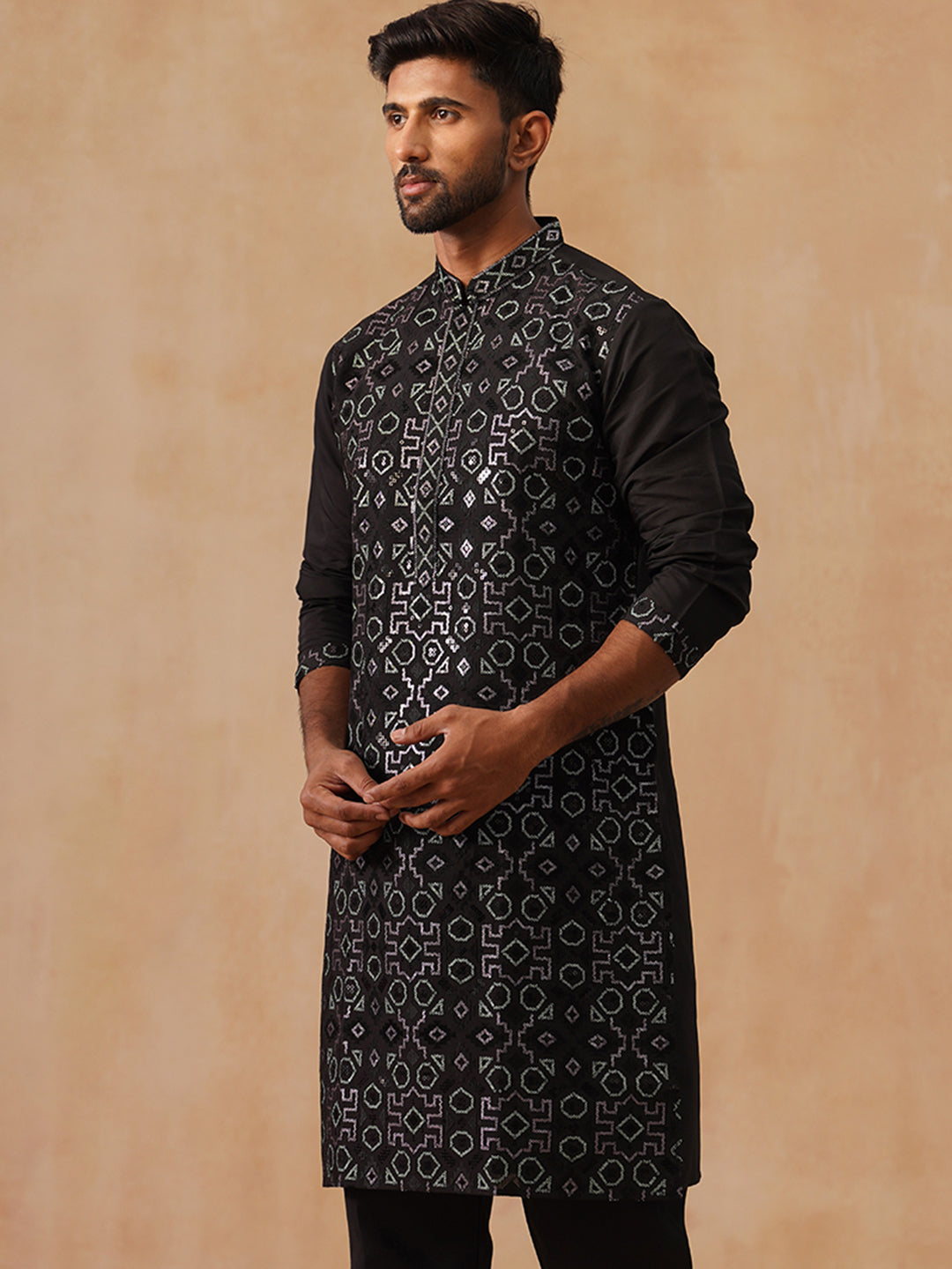 Ethnic Kurtas in Luxurious Silk Blend ( KO 5295 Black )