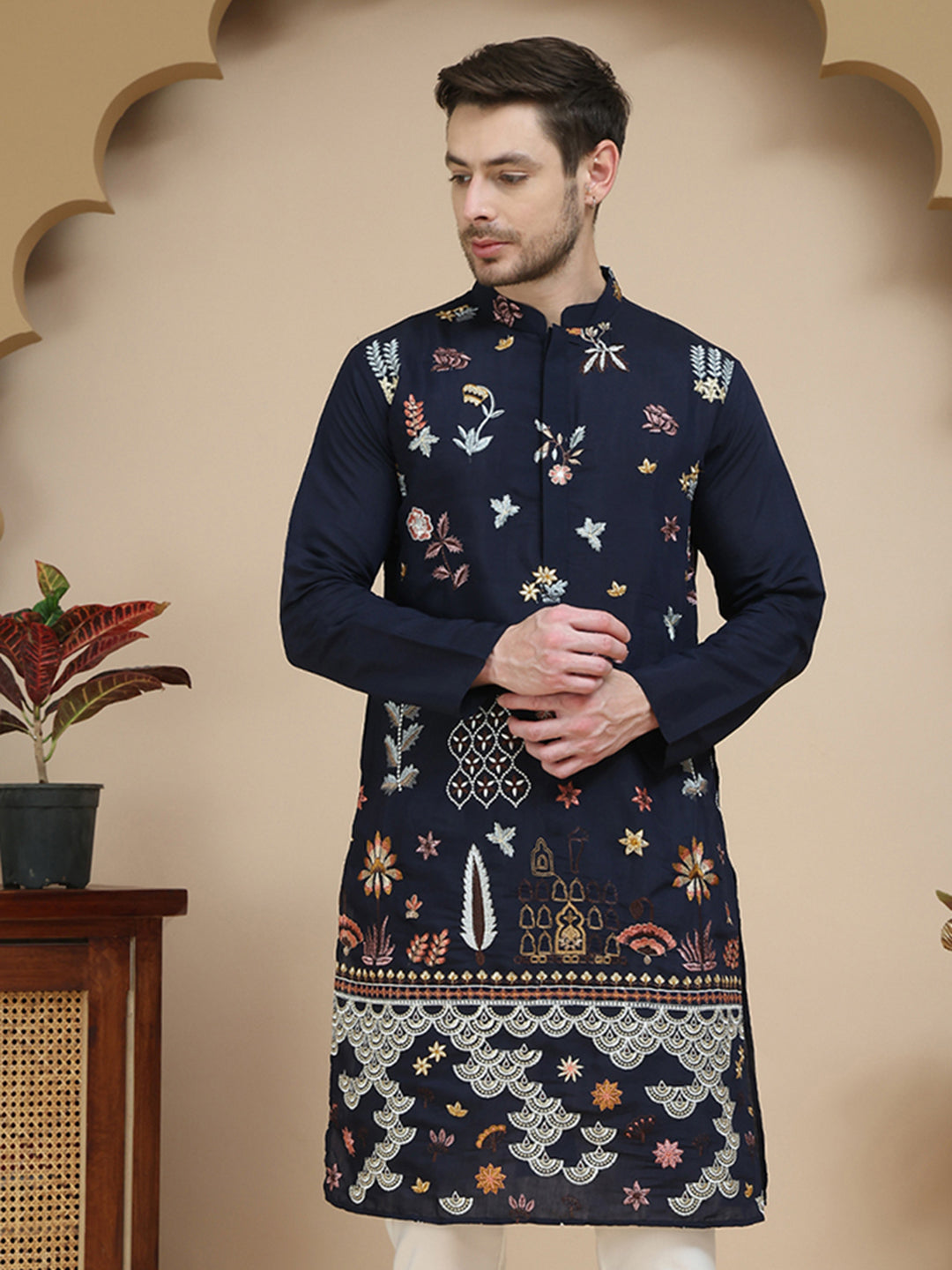 Floral Embroidered and Sequins Kurtas ( KO 5140 Navy )