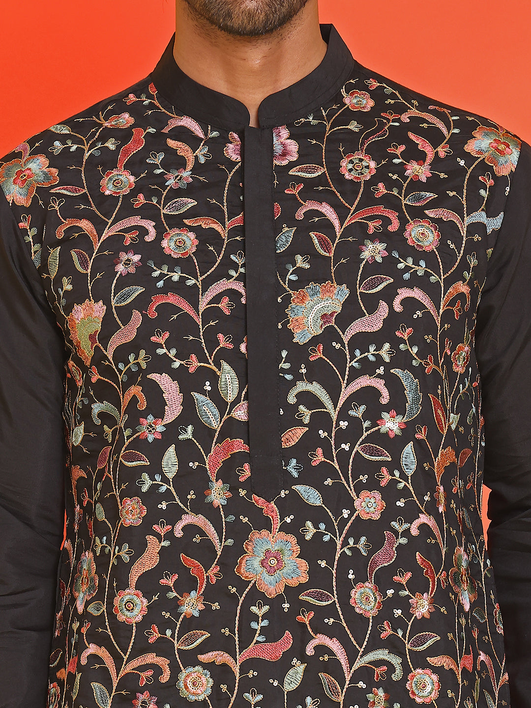 Floral Embroidered Straight Kurta Set ( JOKP B-P 5235 Black )