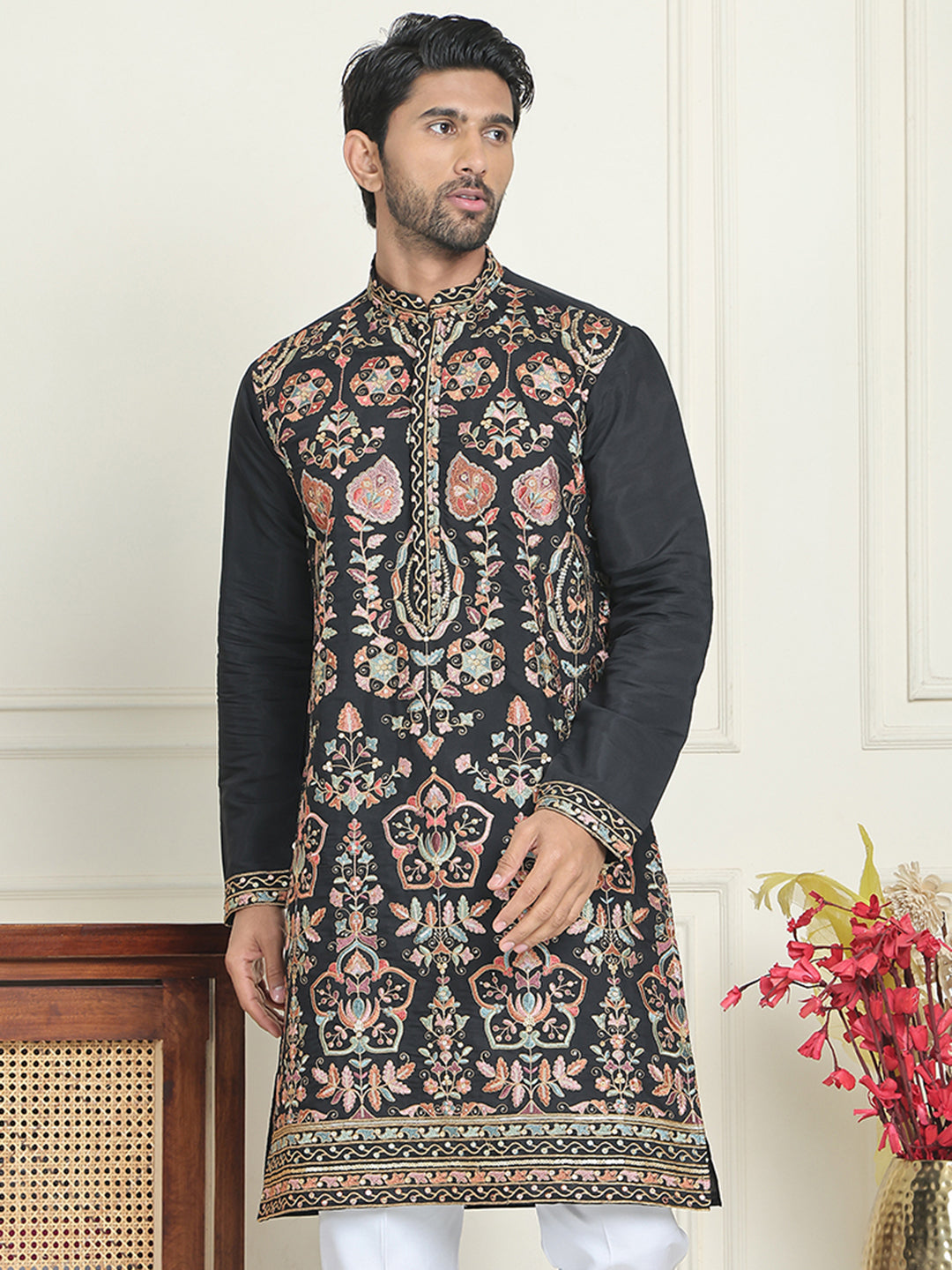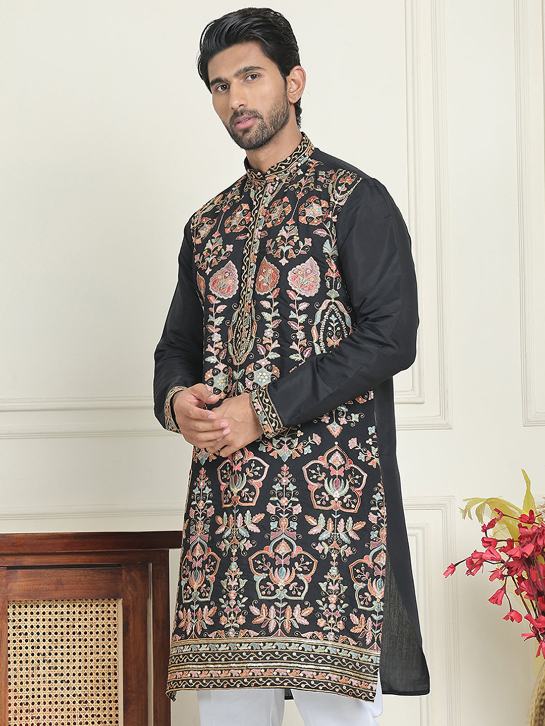 Floral Embroidered Straight Kurtas For Men ( KO 5200 Black )