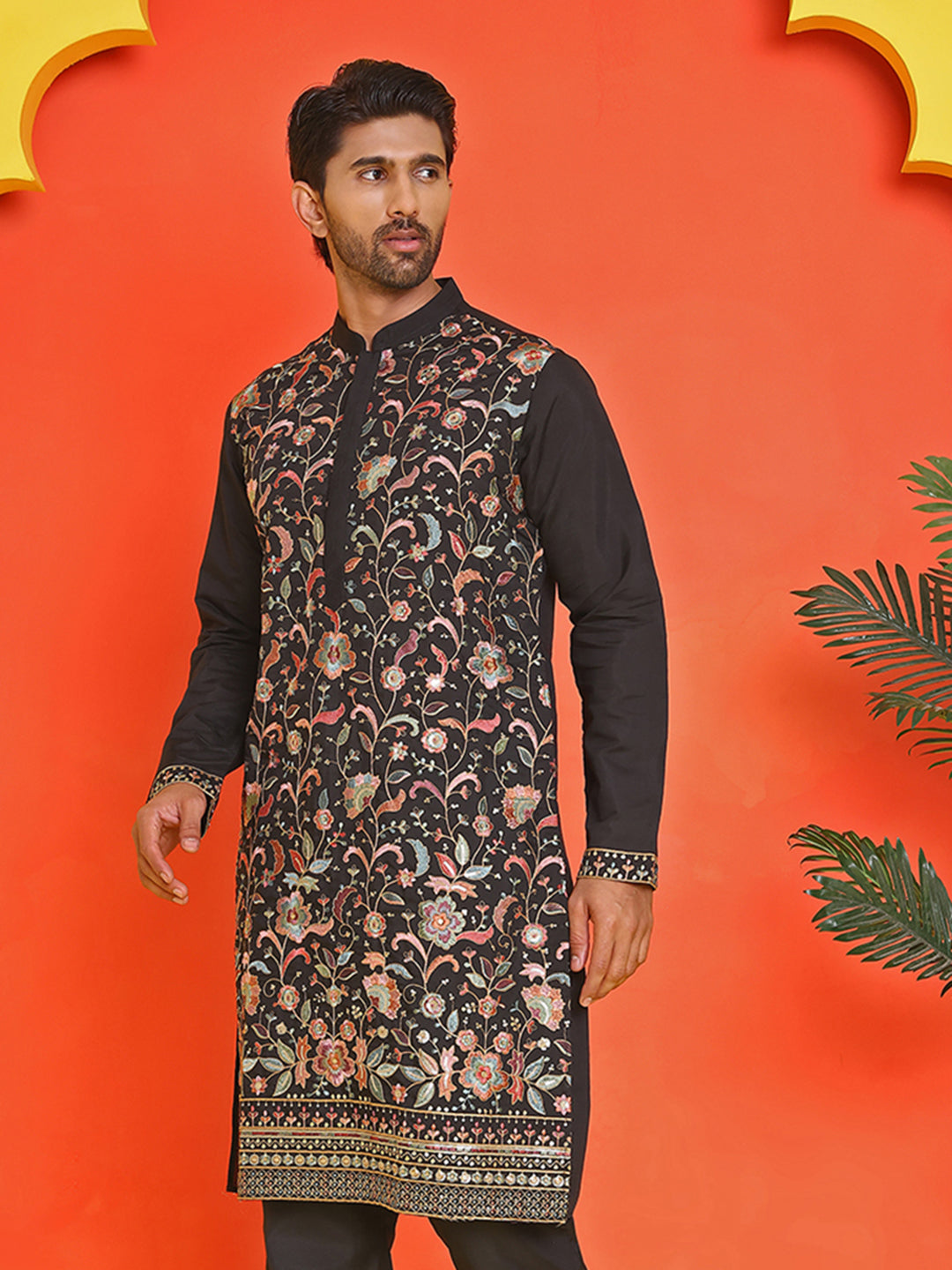 Floral Embroidered Straight Kurtas ( KO 5235 Black )