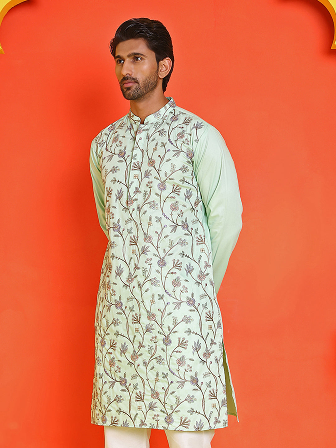 Floral Embroidered Straight Kurtas ( KO 5236 Sky )