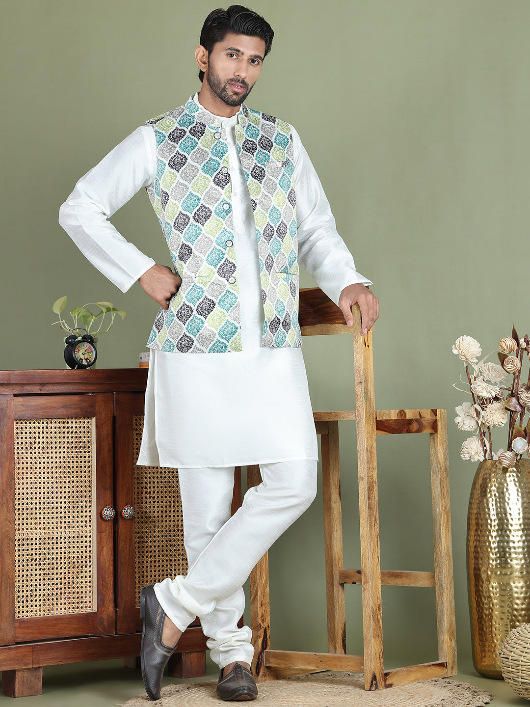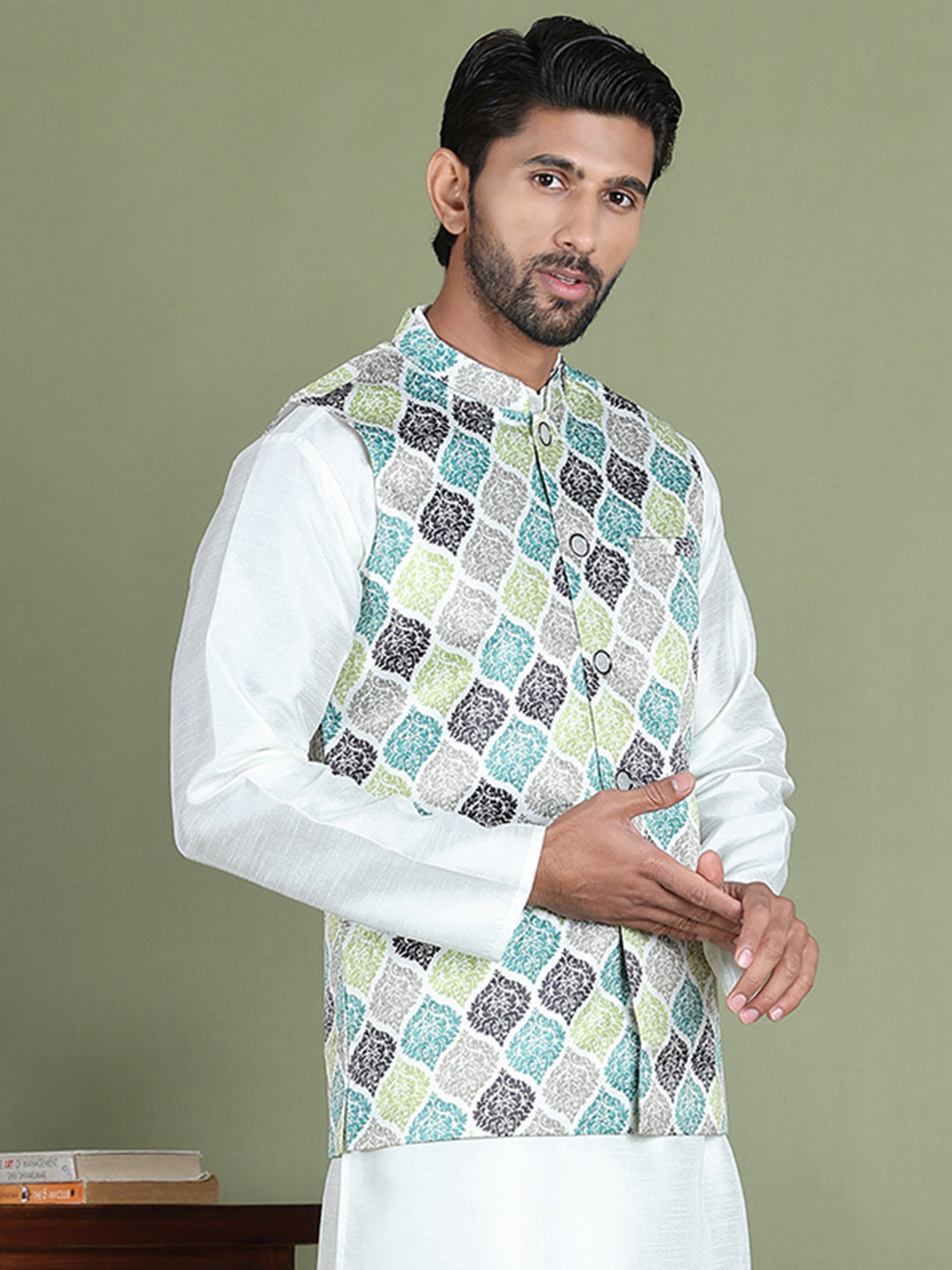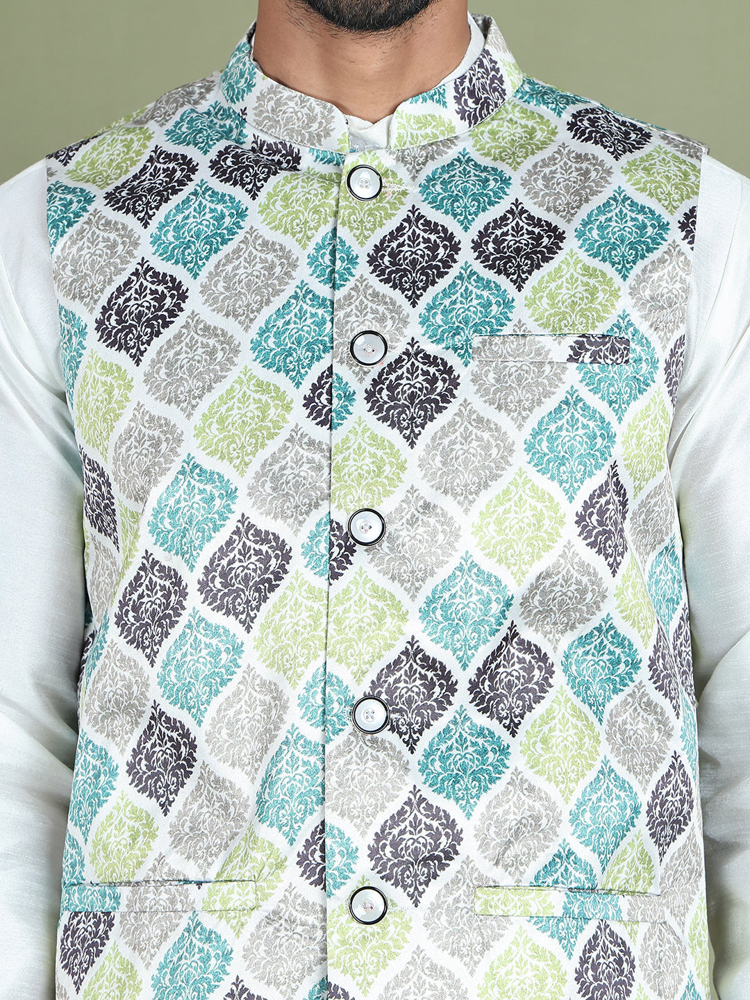 Floral Printed Nehru Jacket ( JOWC 4090Green )