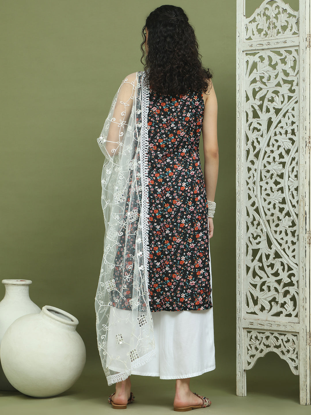 Wash Care : Wash with mild detergent. Top and Palazzo : 100% Viscose Rayon. Dupatta : 100% Net.Dupatta Width : 65 cm Dupatta Length : 225 cm