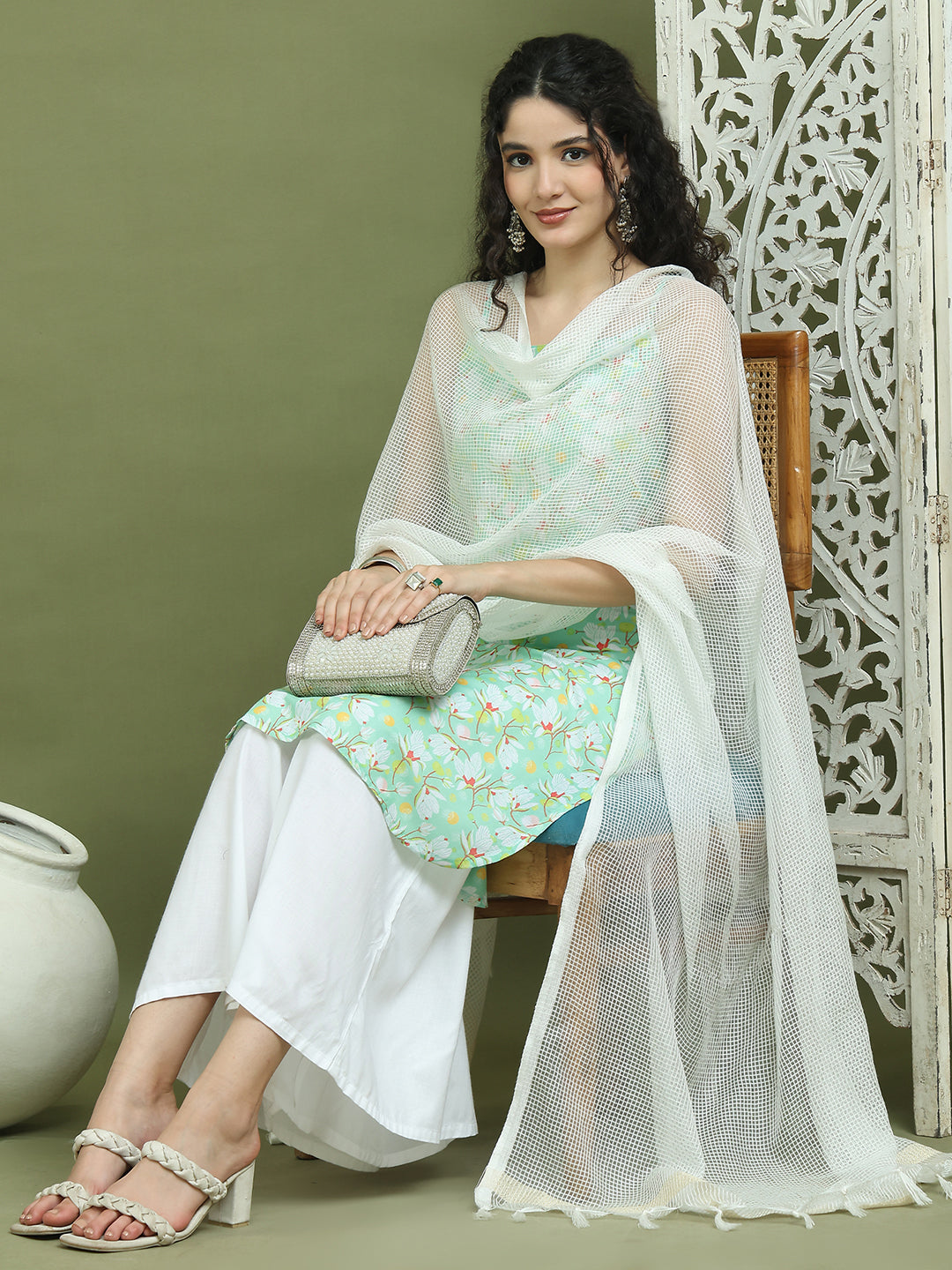 Wash Care : Wash with mild detergent. Top and Palazzo : 100% Viscose Rayon.Dupatta : 100% Net.Dupatta Width : 106 cm Dupatta Length : 225 cm