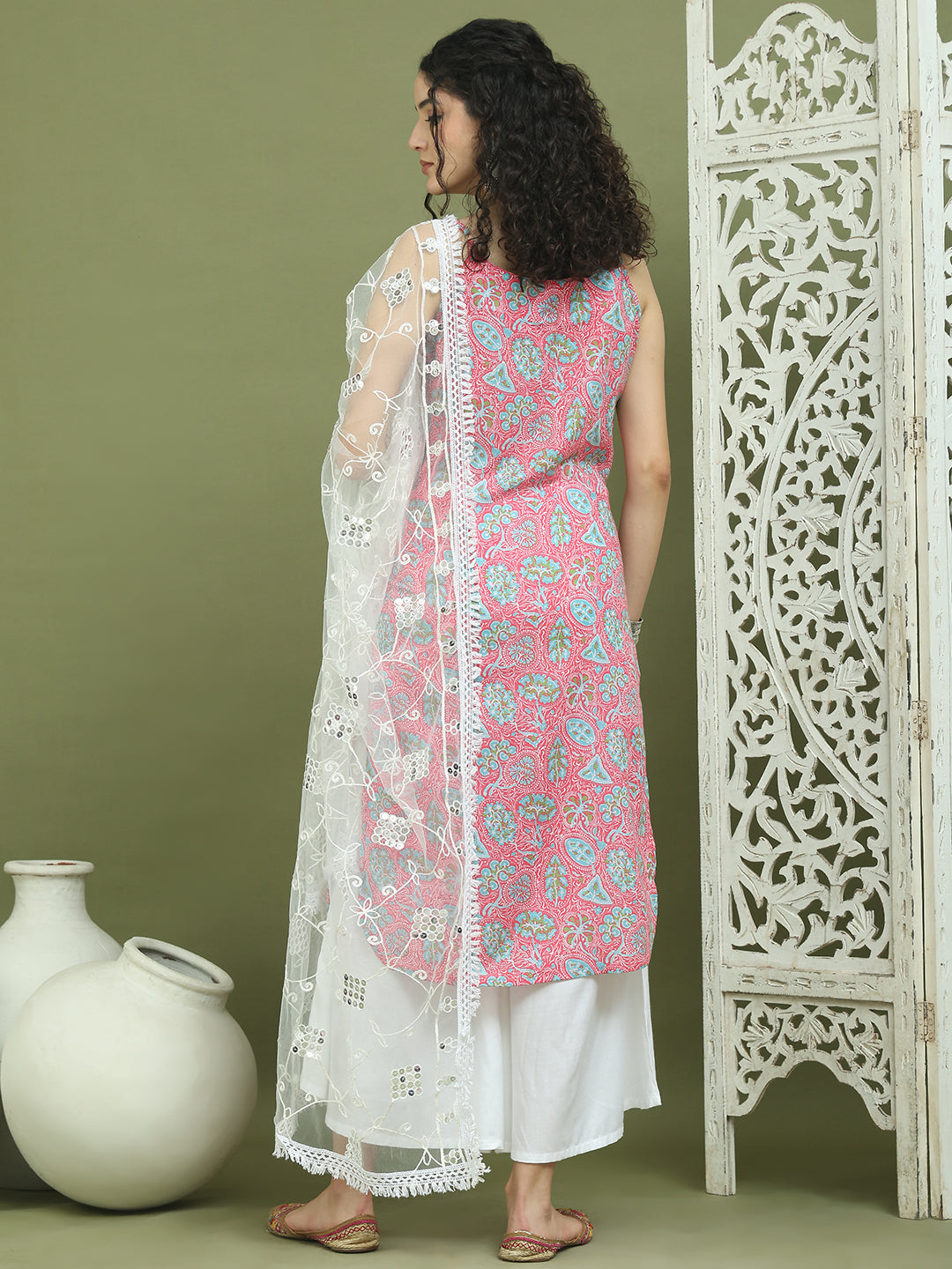 Floral Printed Rayon Kurta Palazzos with Dupatta ( JOKPL 2137W D67W 1578 Pink )
