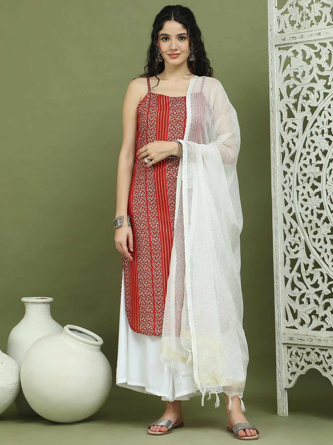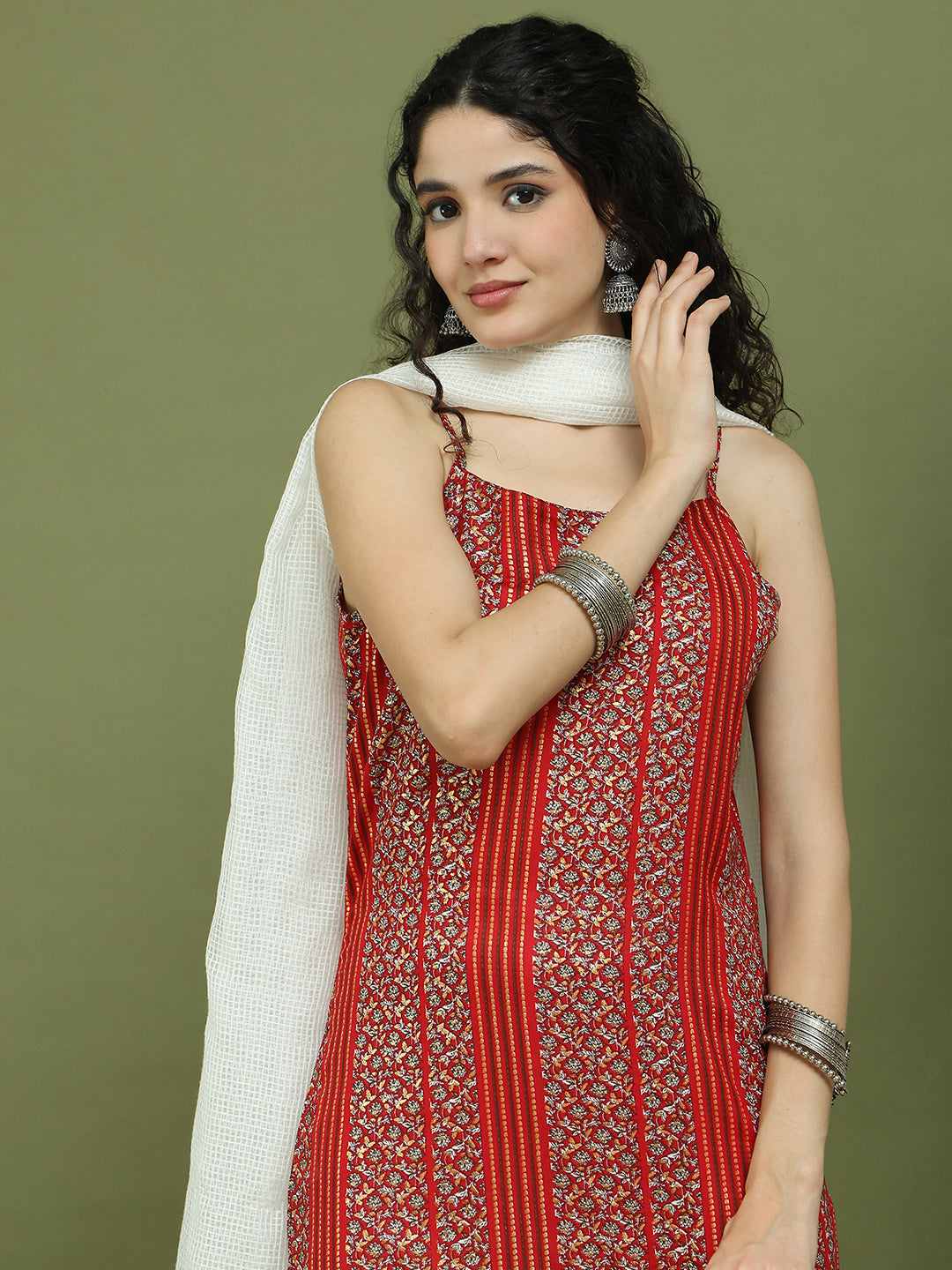 Foil Printed Rayon Kurta Palazzo Dupatta ( JOKPL 2137W D31W 1586 Red )