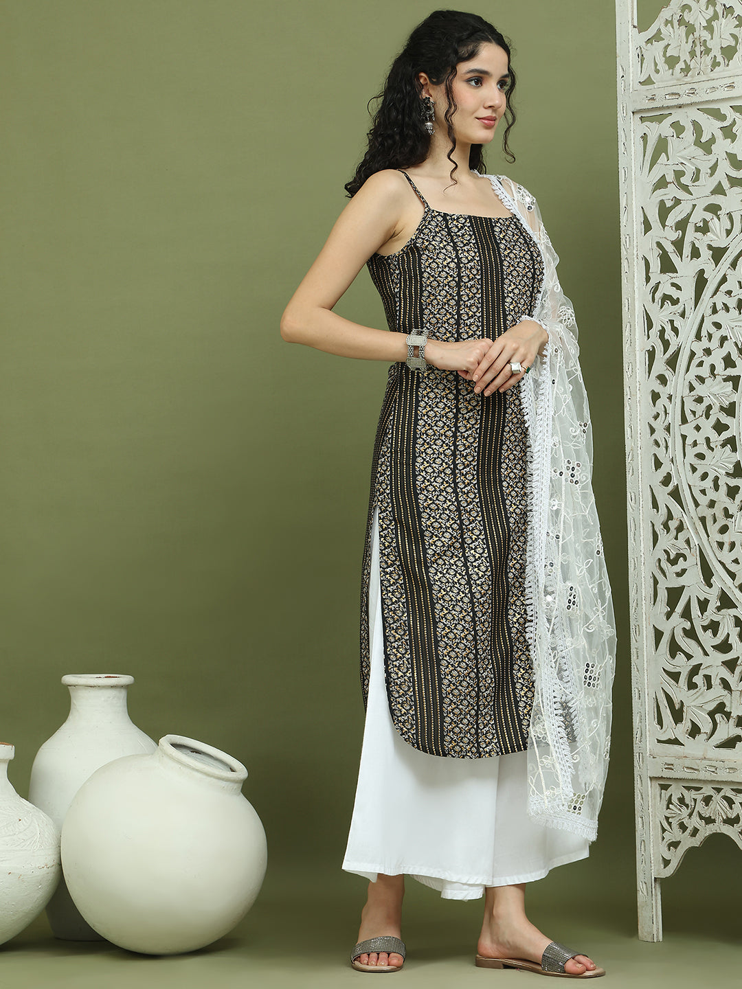 Foil Printed Rayon Kurta Palazzo Dupatta ( JOKPL 2137W D67W 1586 Black )