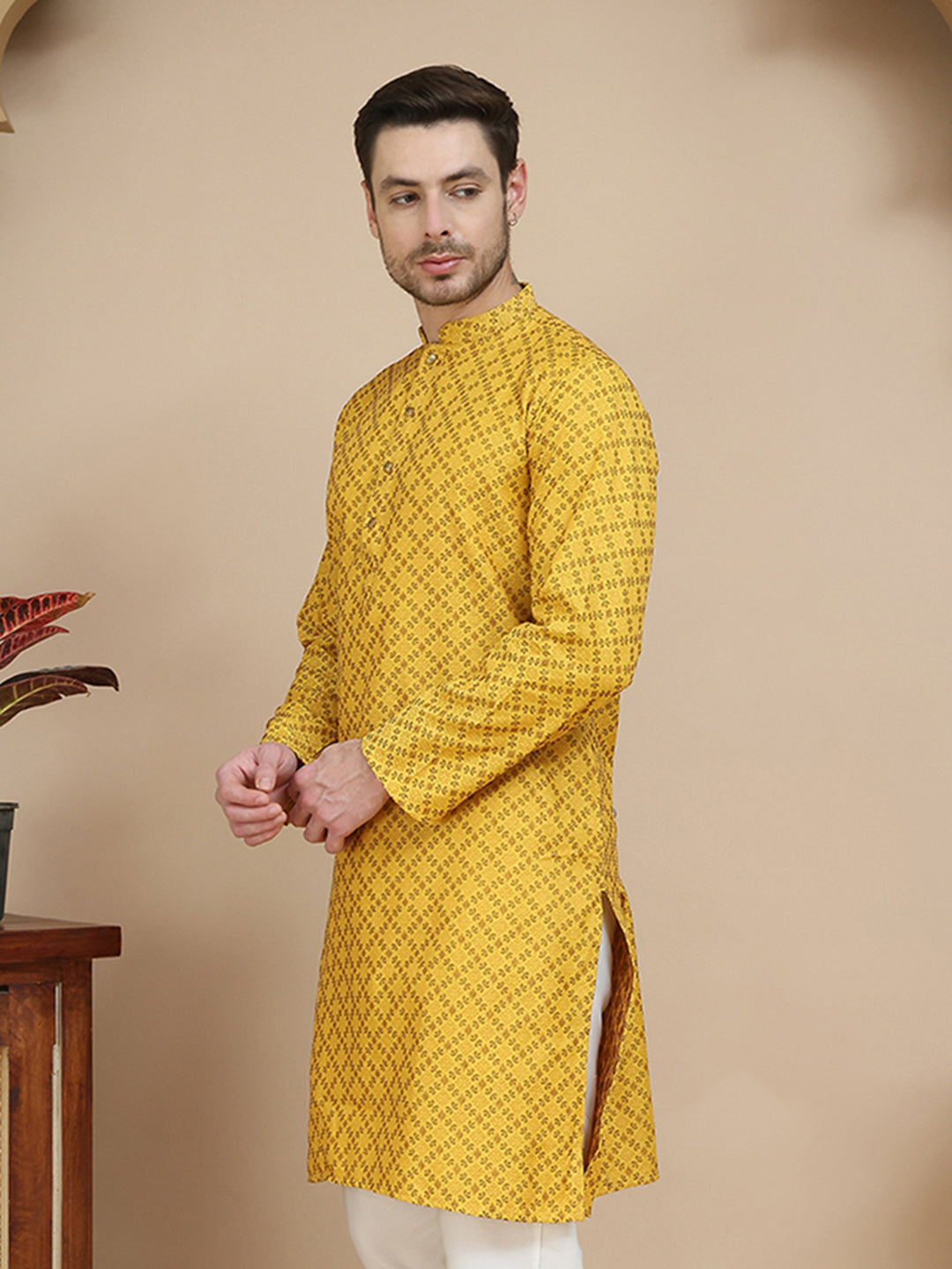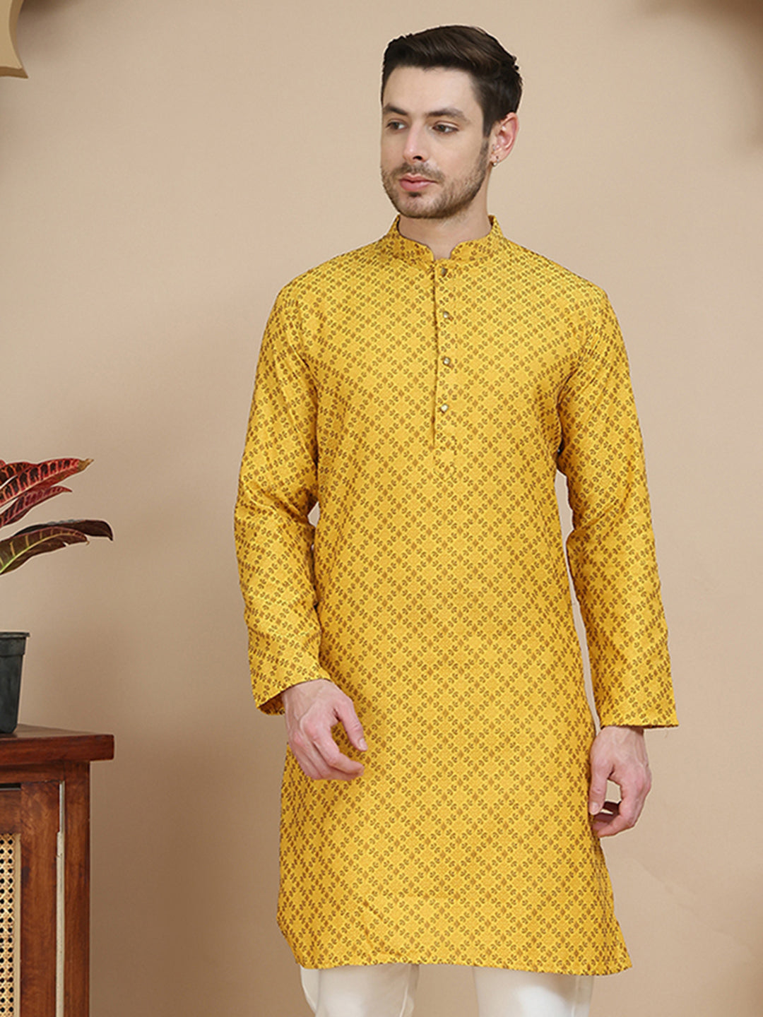 Jacquard Silk Straight Kurtas ( KO 5211 Mustard )