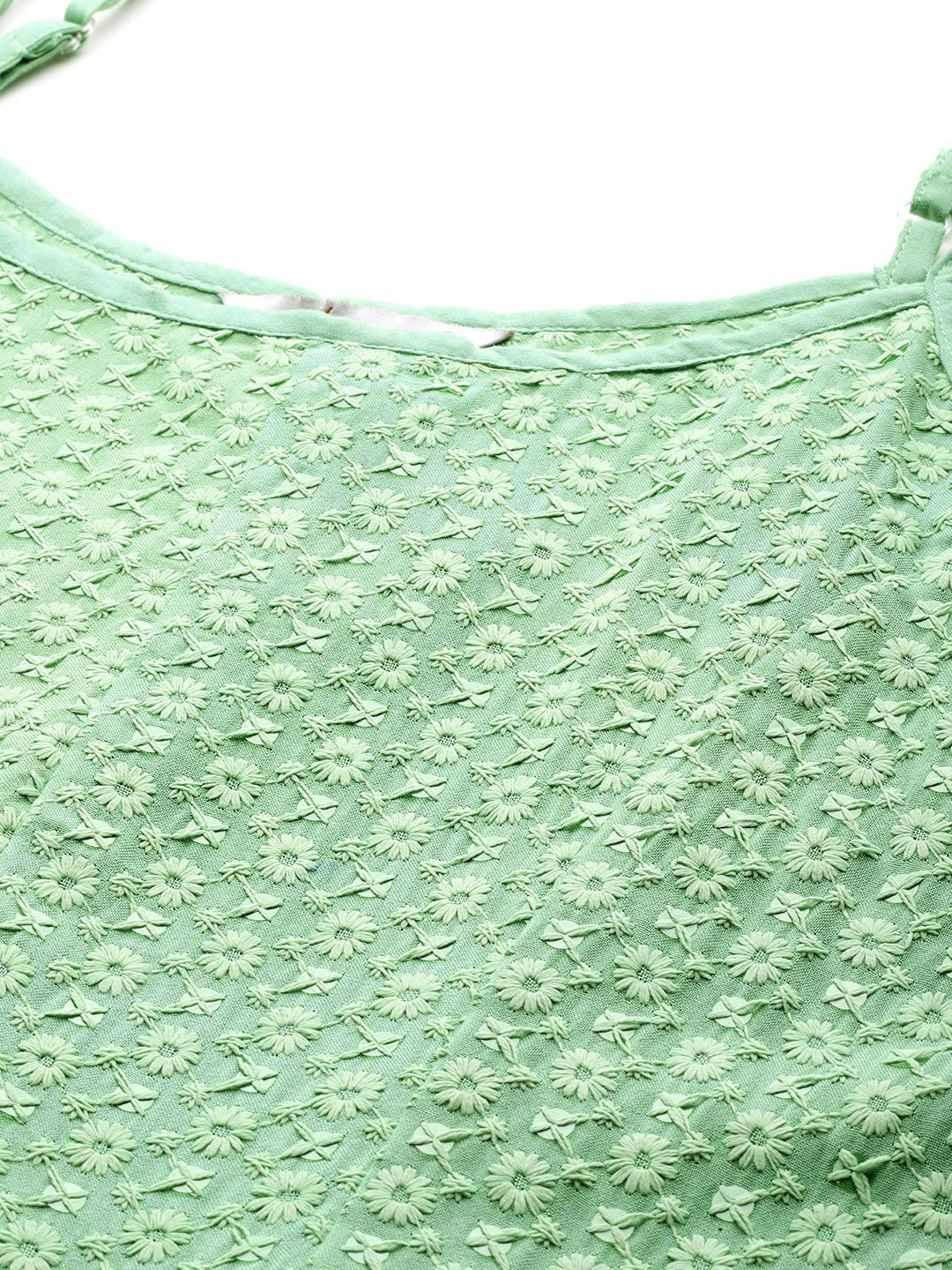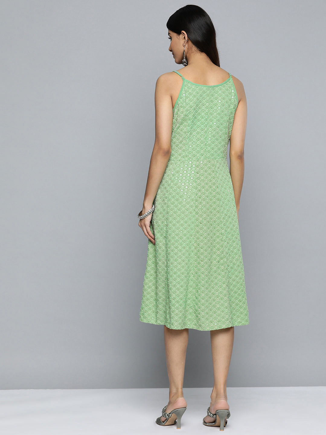 Jompers Green Floral Sequin Embroidered A-Line Midi Dress ( JOK 1494 Pista )