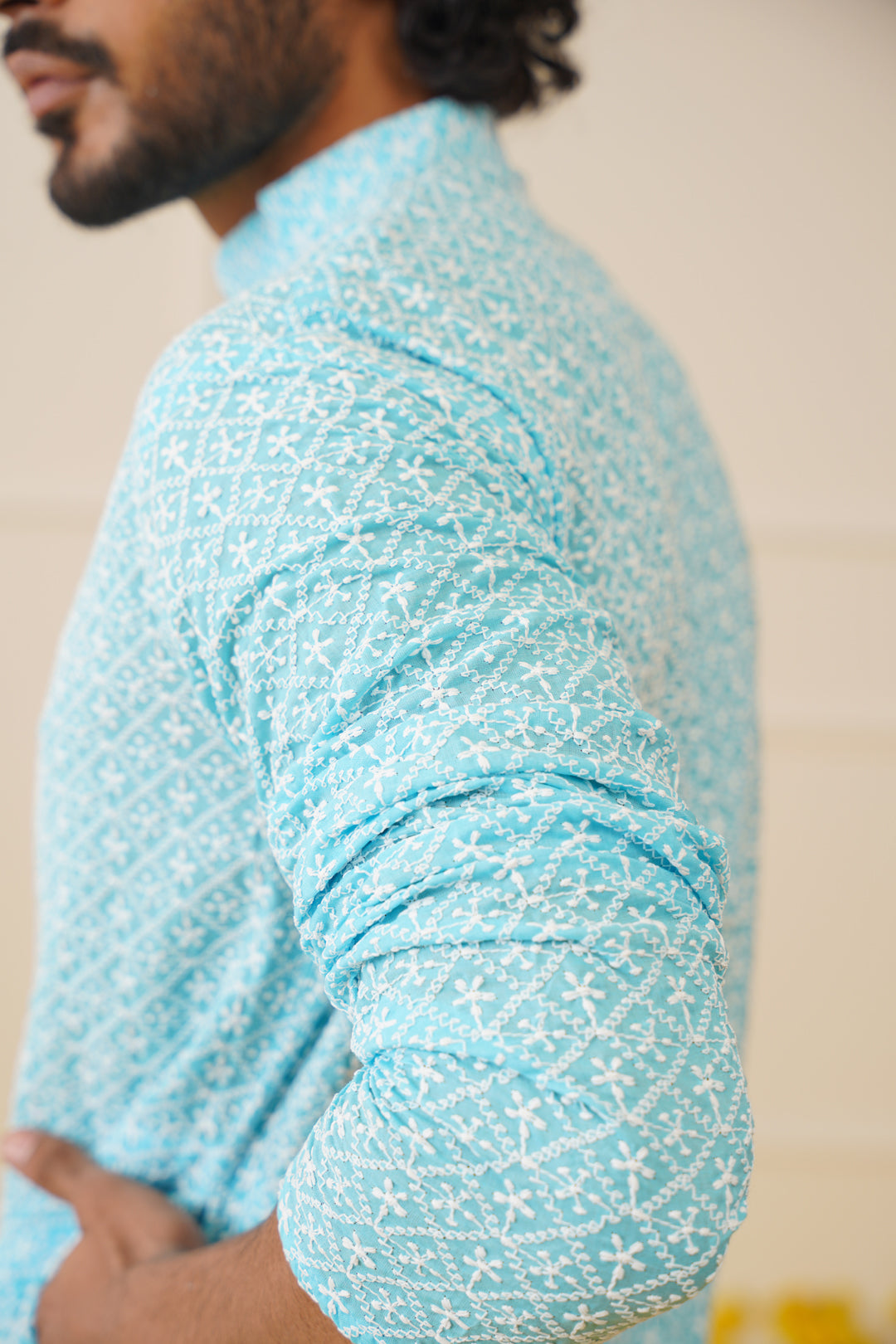 Jompers Men's Sky Embroidered Kurta Only ( KO 626Sky )