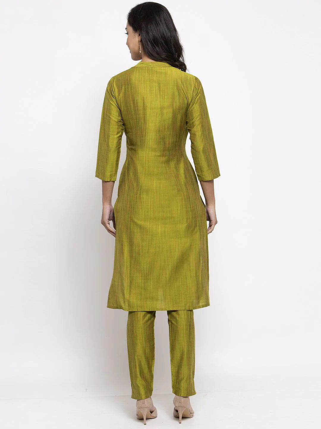 Jompers Women Green Self-Striped Kurta with Trousers ( JOKS 1310 Green )