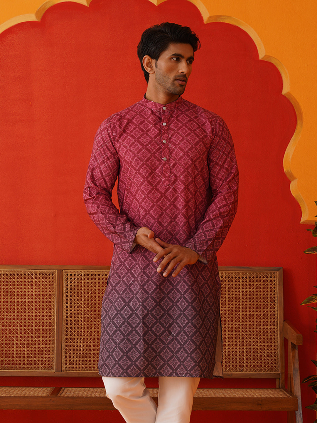 Maroon Ombre Printed Kurtas For Men ( KO 5074Maroon )