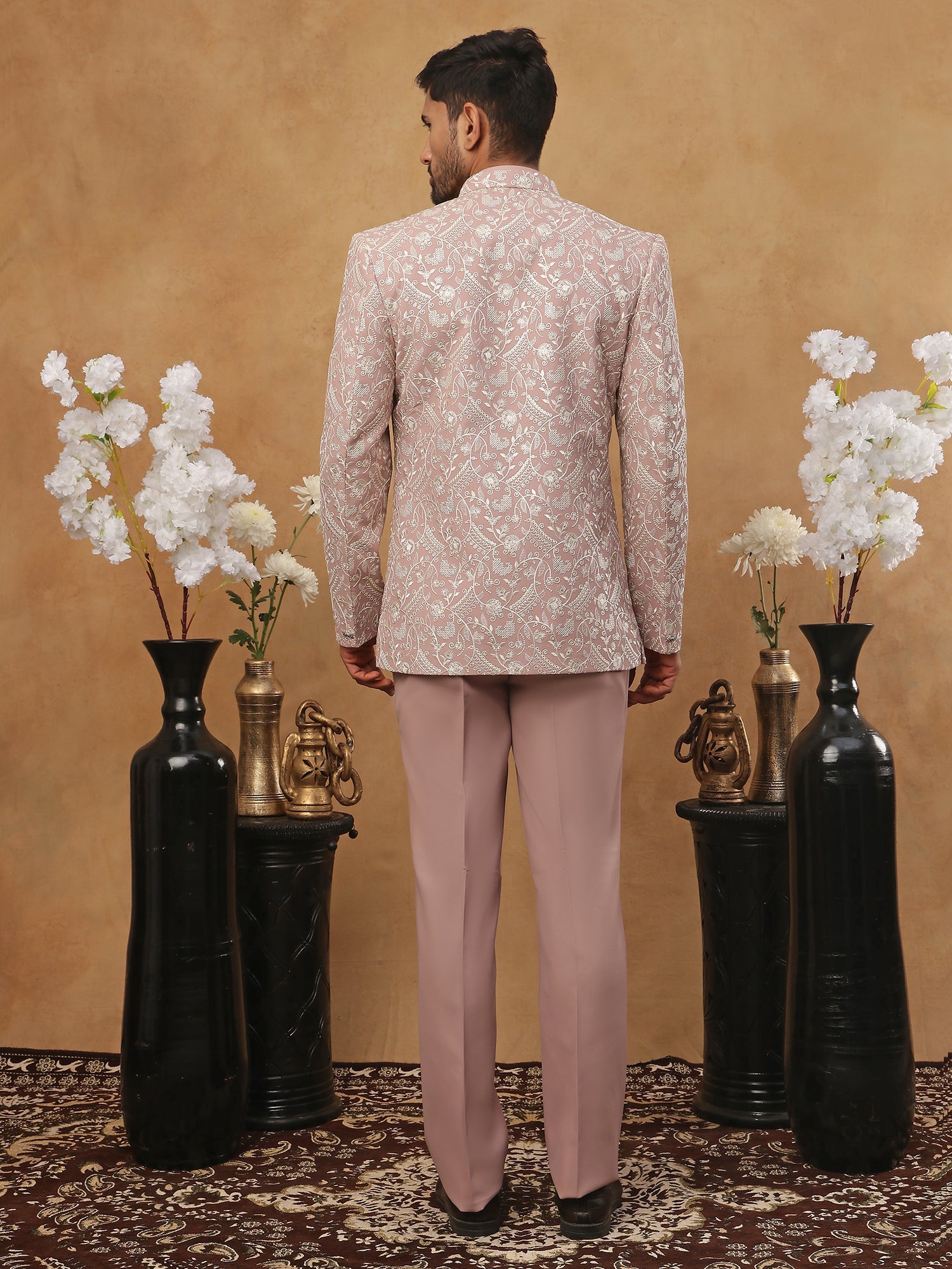 Men's Dusty Pink & Silver Embroidered Indo-Western Set ( 50JIND 114 Magenta )