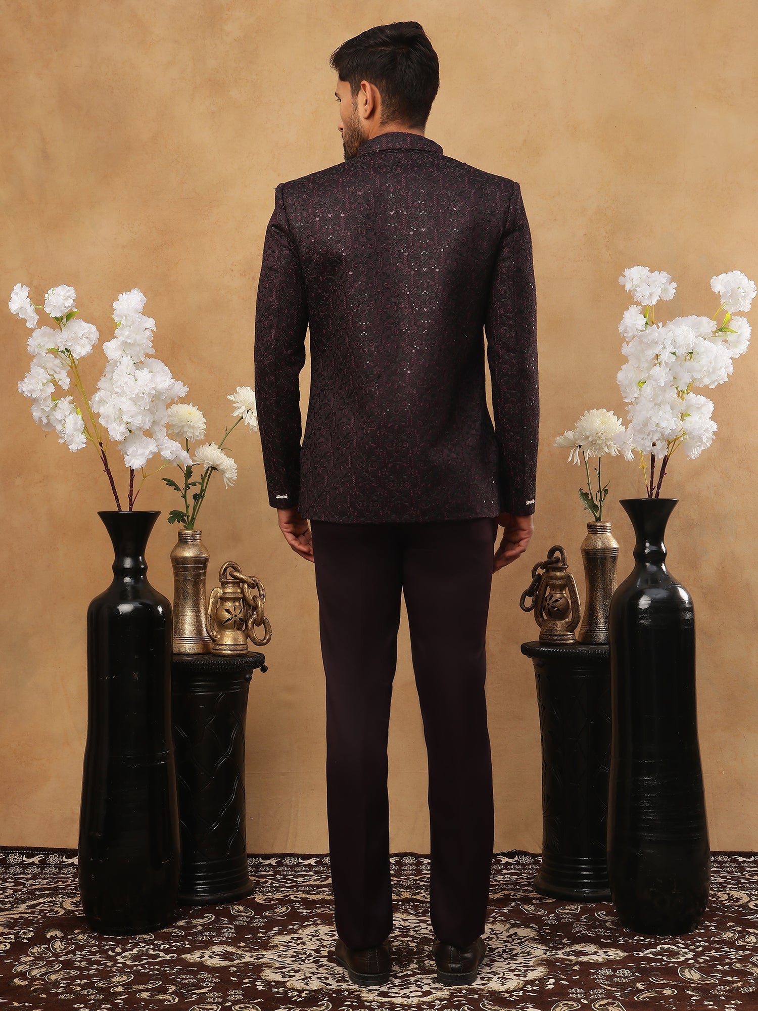 Men's Royal Wine Embroidered Indo-Western Suit Set ( 50JIND 102 Wine )