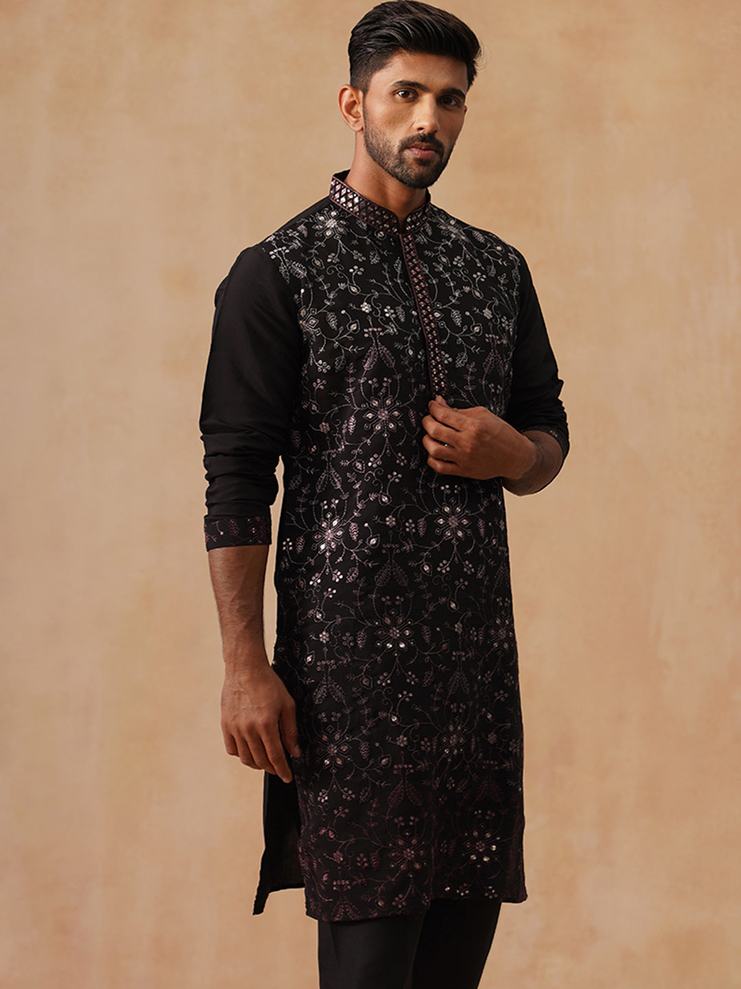 Men’s Silk Blend Embroidered Kurtas ( KO 5296 Magenta )