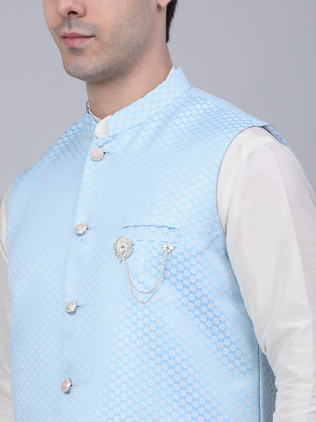 Men's Blue Woven Design Waistcoats ( JOWC 4066Blue )