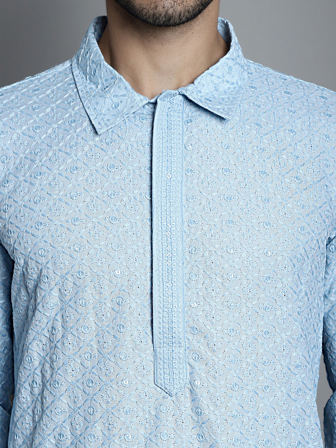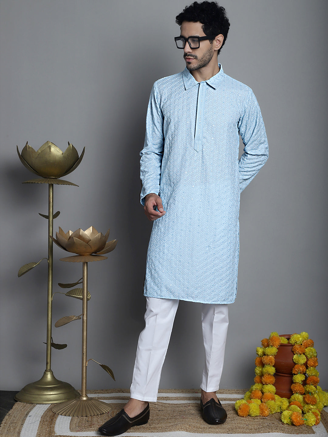 Men's Chikankari Embroidered and Sequence Kurta Only