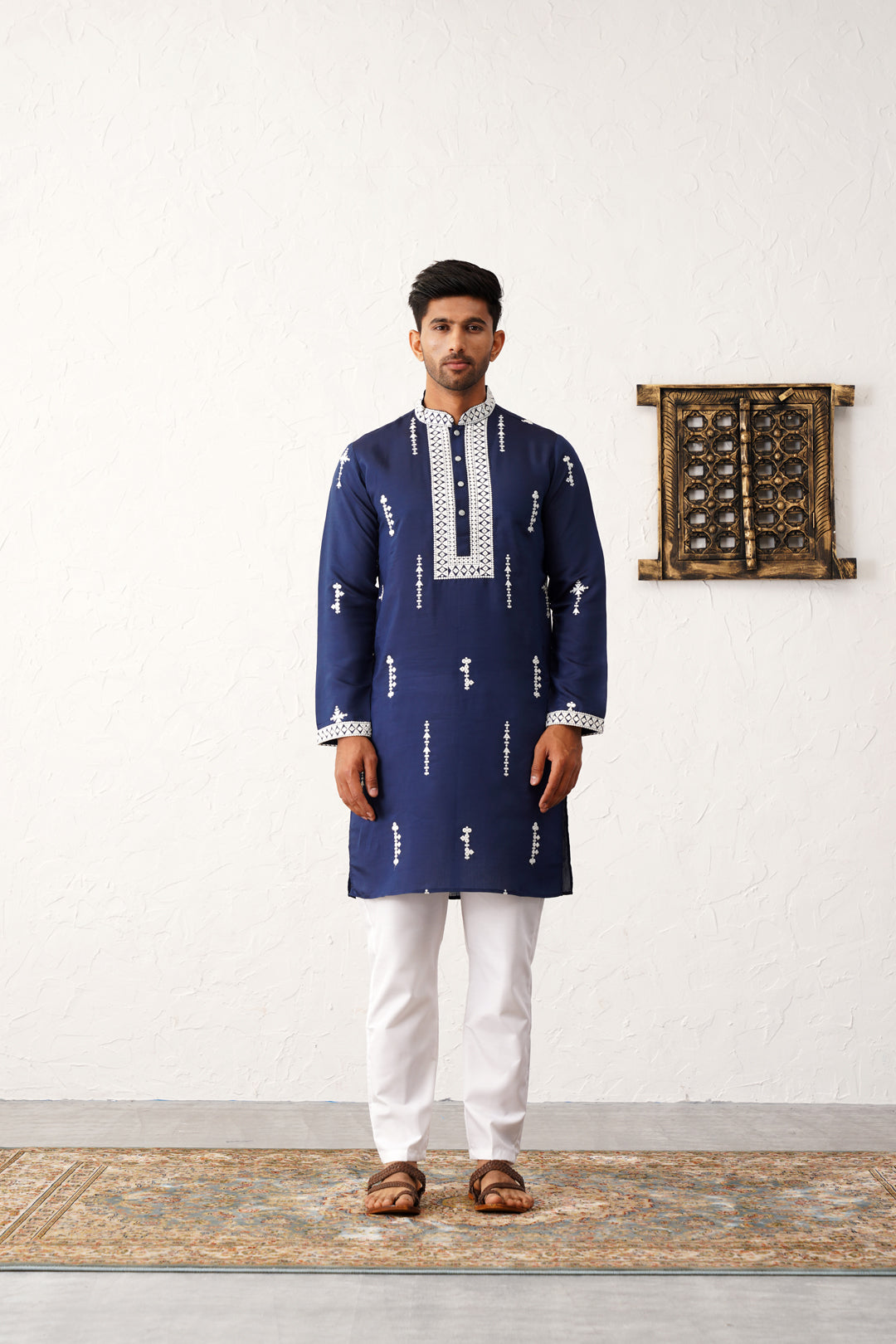 Men's Collar Chikankari Embroidered Kurta With Pyjama