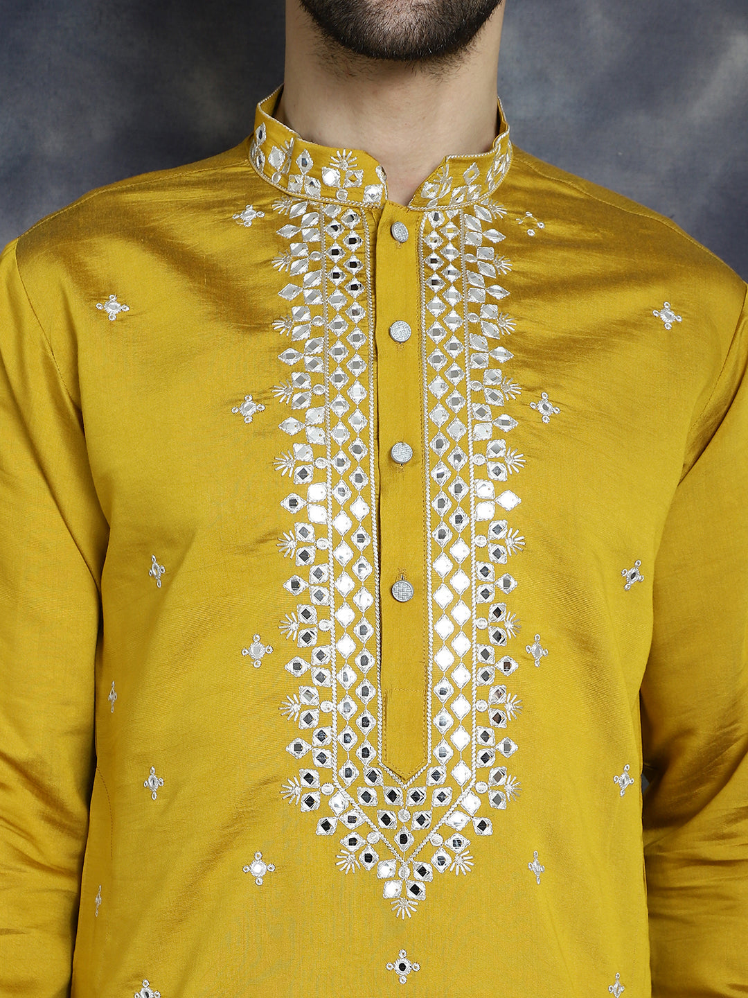 Men's Embroidered Kurtas ( KO 5045Mustard )