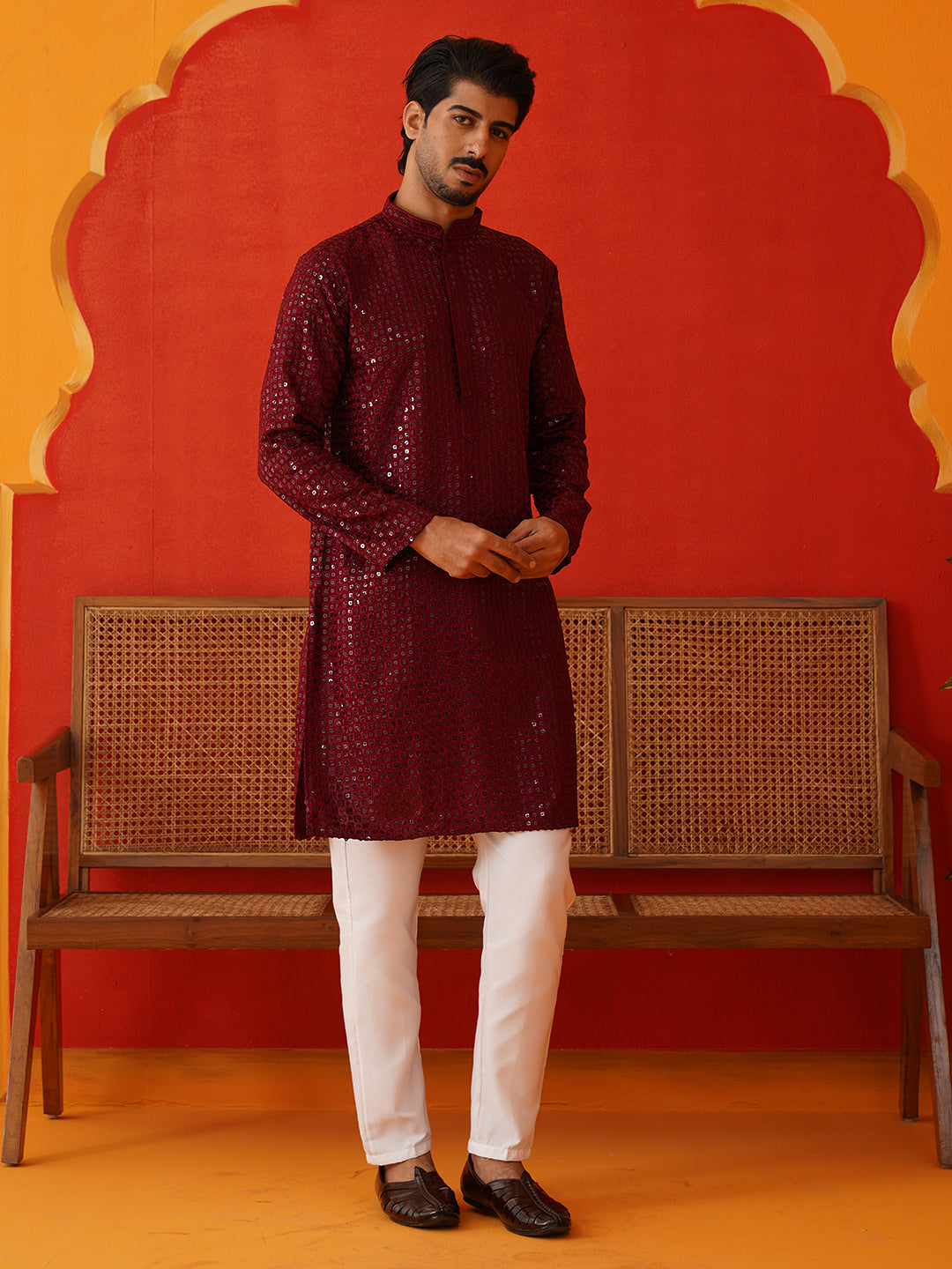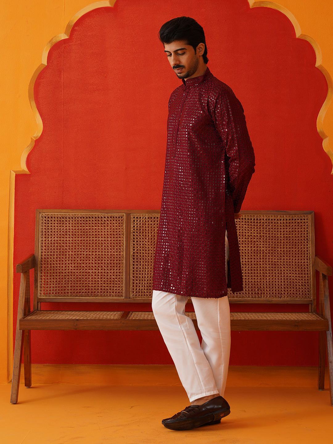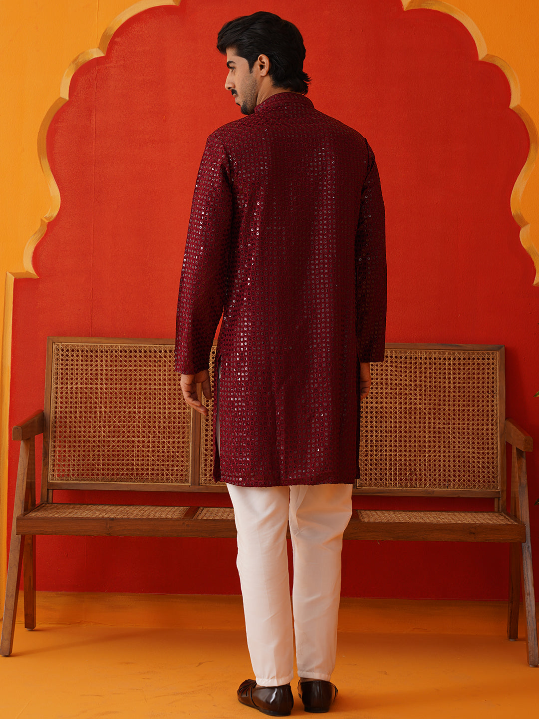 Men's Embroidered & Sequence Kurta Set ( JOKP P 5136Maroon )