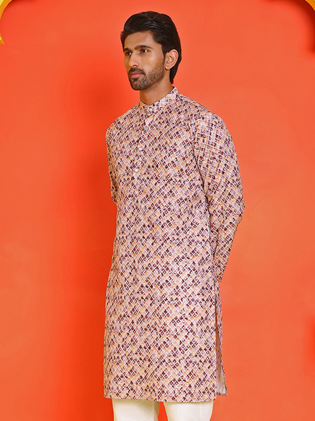 Men's Purple Printed Kurtas ( KO 5210 Purple )