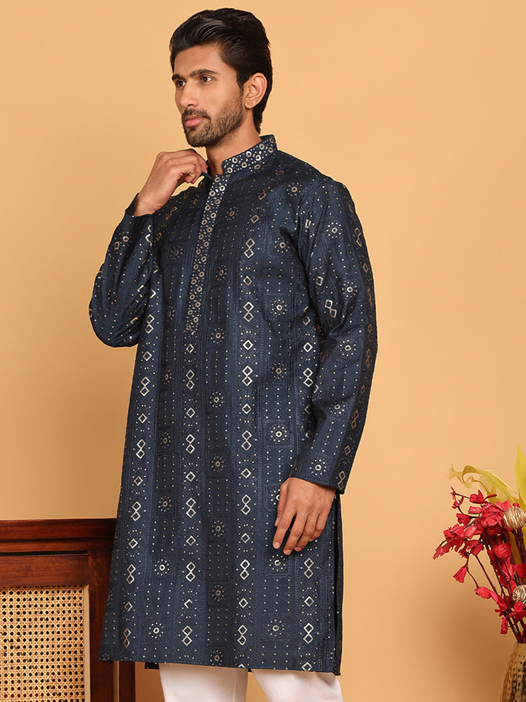 Men's Sequins Embroidered Kurtas. ( KO 5183 Navy )