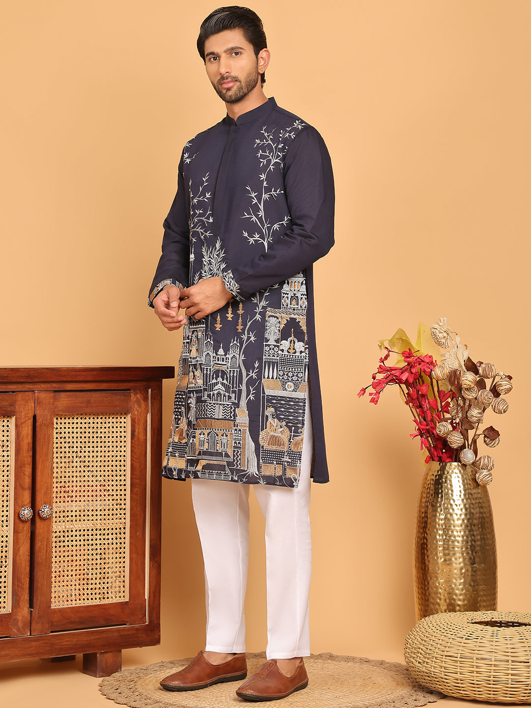 Navy Blue Embroidered Straight Kurta Set For Men ( JOKP P 5176 Navy )